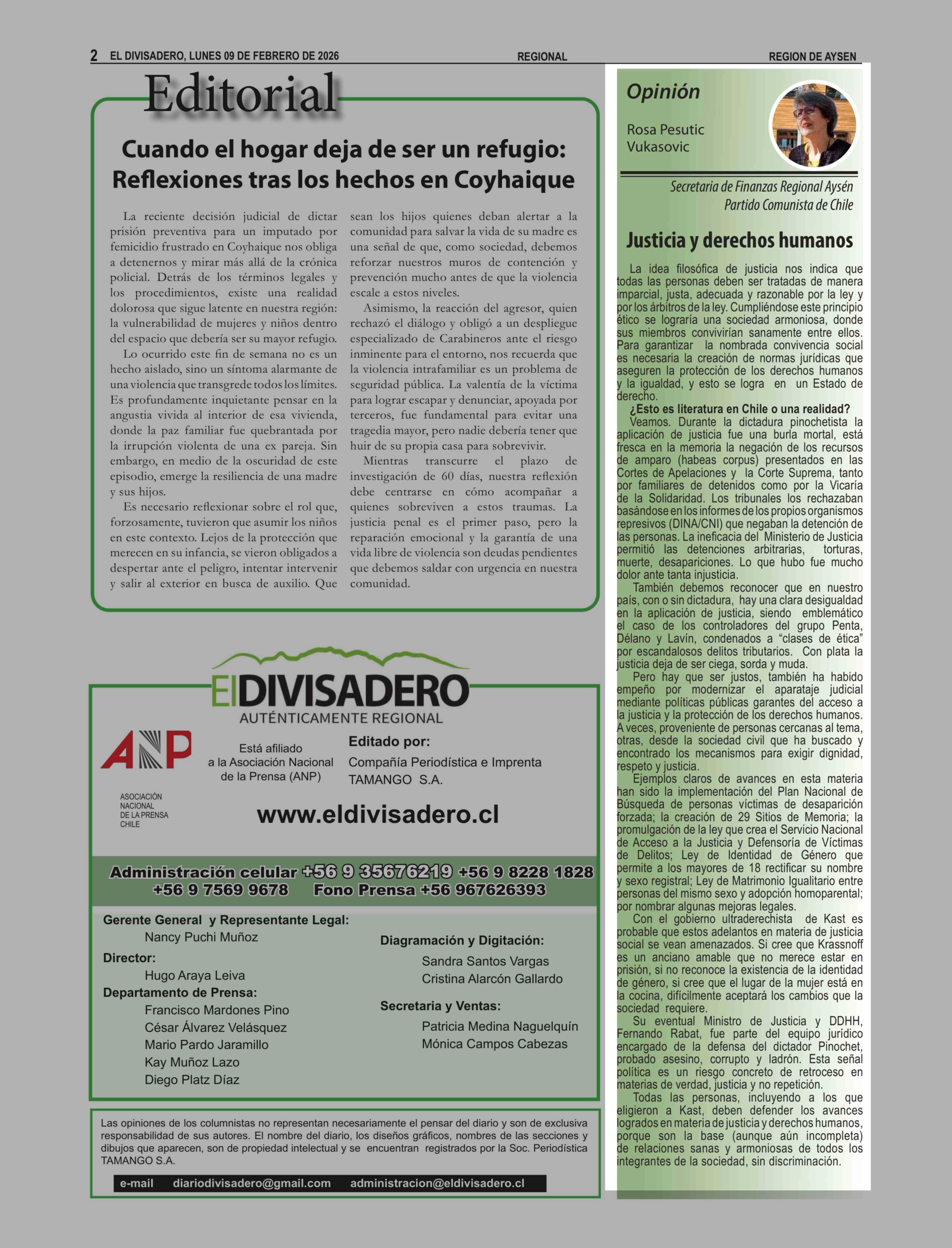 Fecha: 09-02-2026 Sector: Columnas de Opinión Región: Región Aysén del General Carlos Ibáñez del Campo