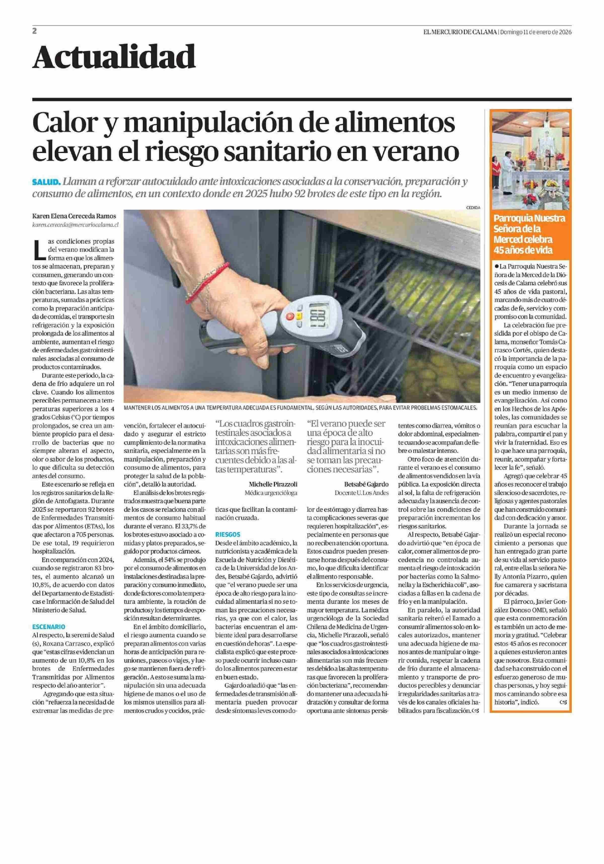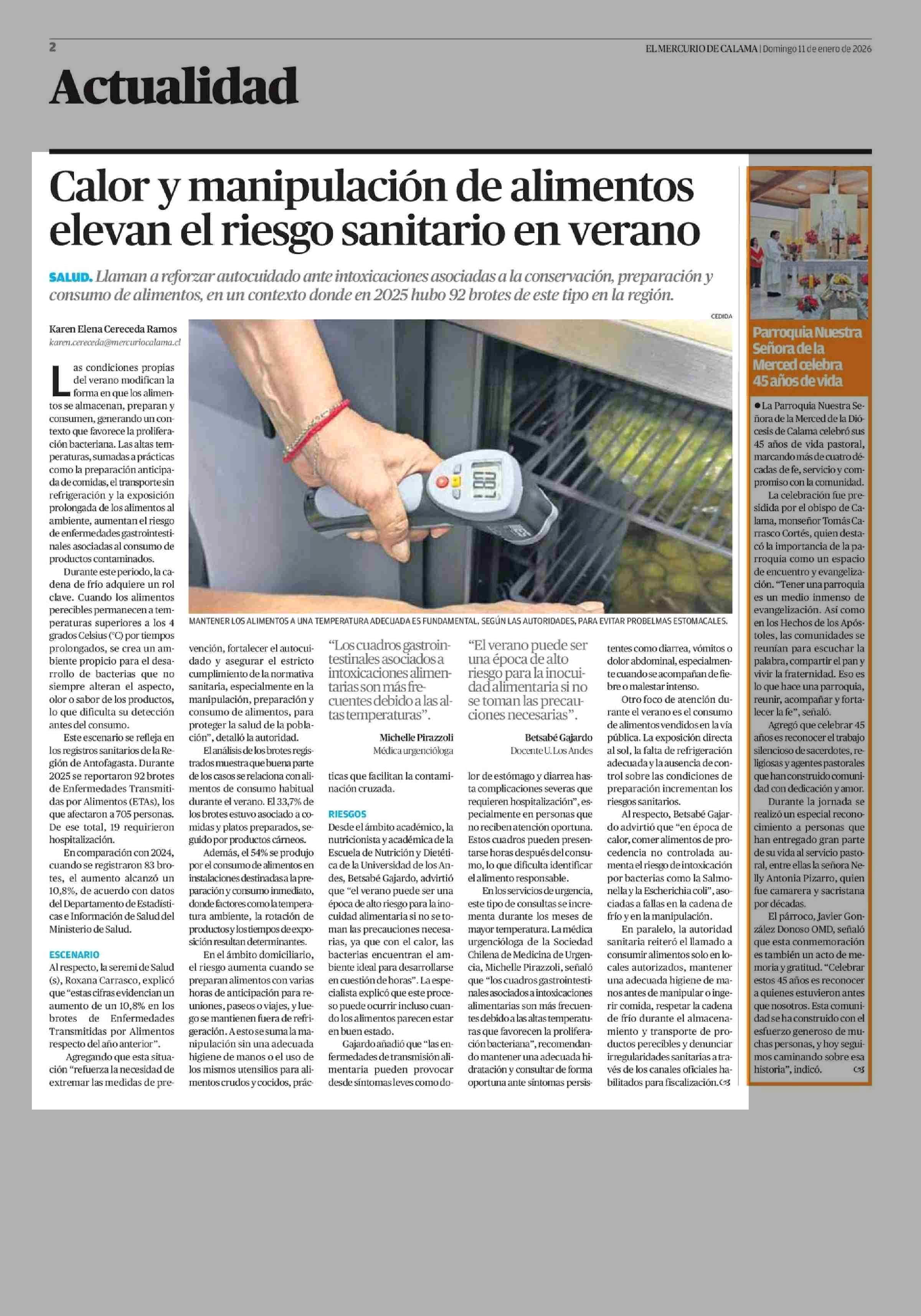 Calor y manipulación de alimentos elevan el riesgo sanitario en verano 11-01-2026 El Mercurio de Calama |