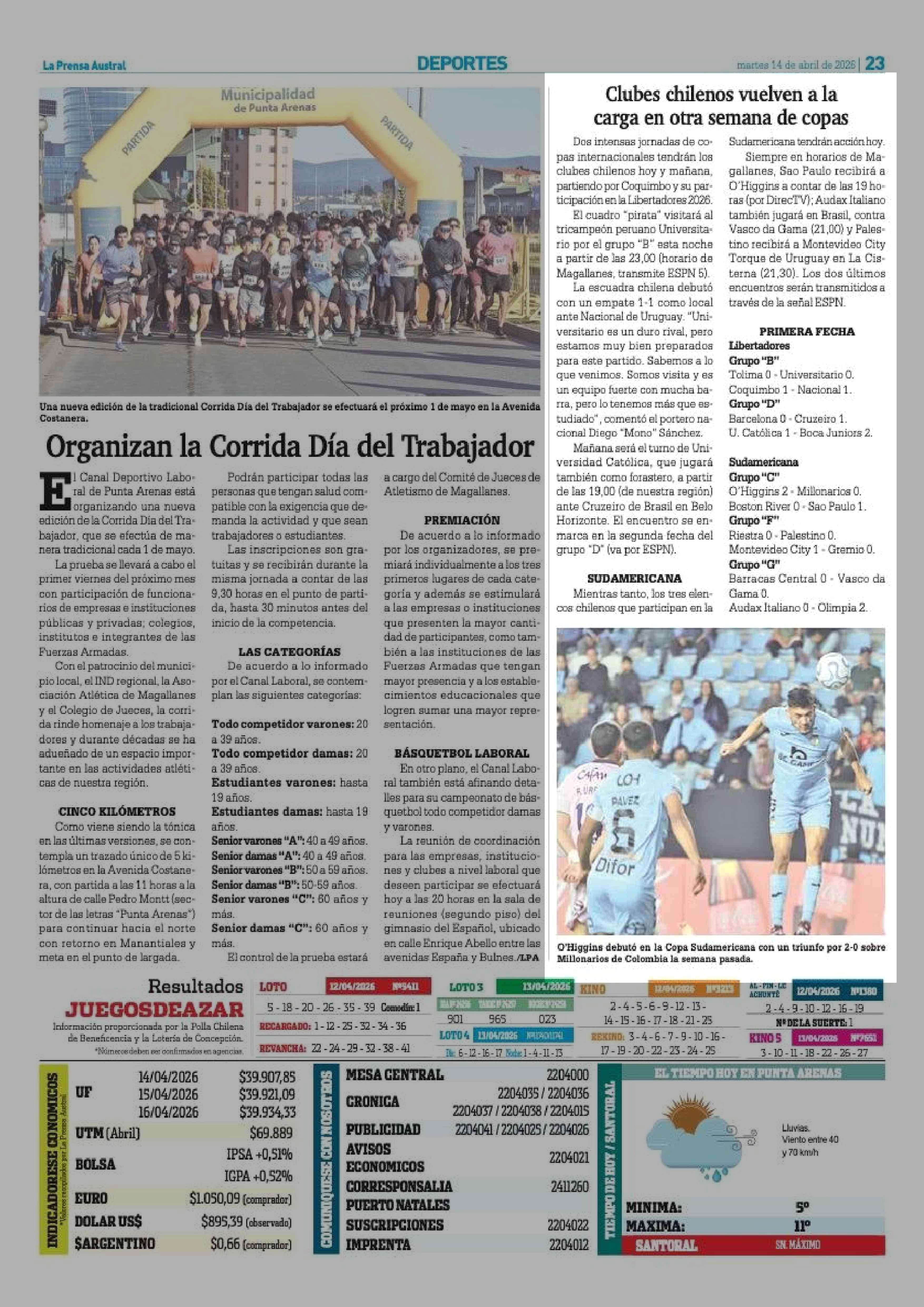 Clubes chilenos vuelven a la carga en otra semana de copas 14-04-2026 La Prensa Austral |