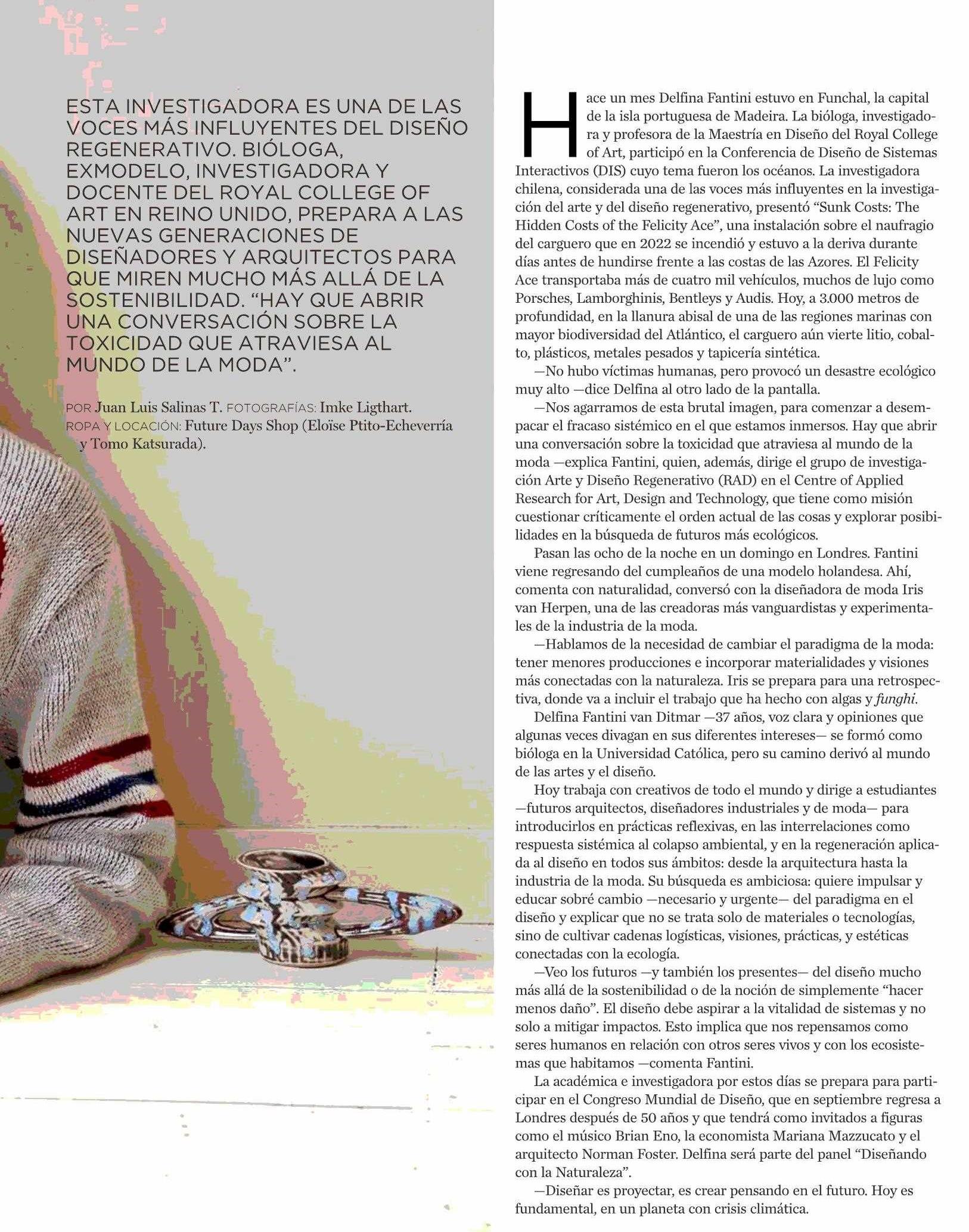 | Título: | Delfina Fantini La bióloga chilena que redefine el futuro de la moda ." |