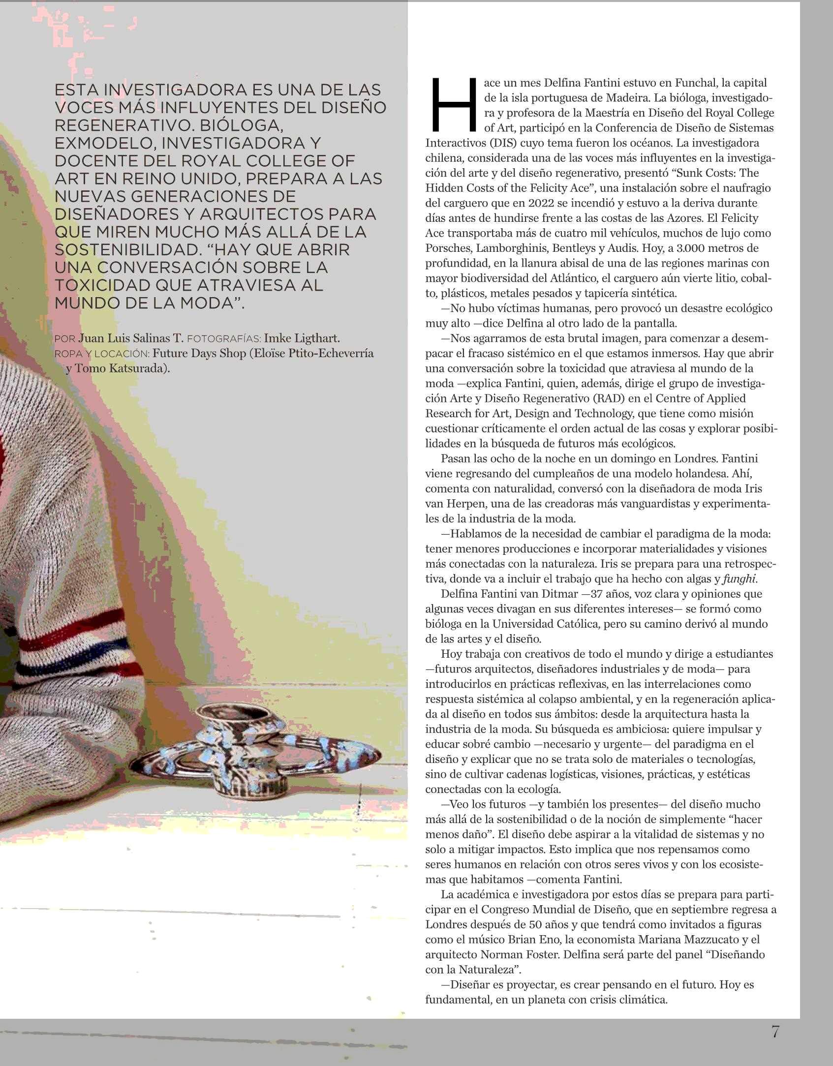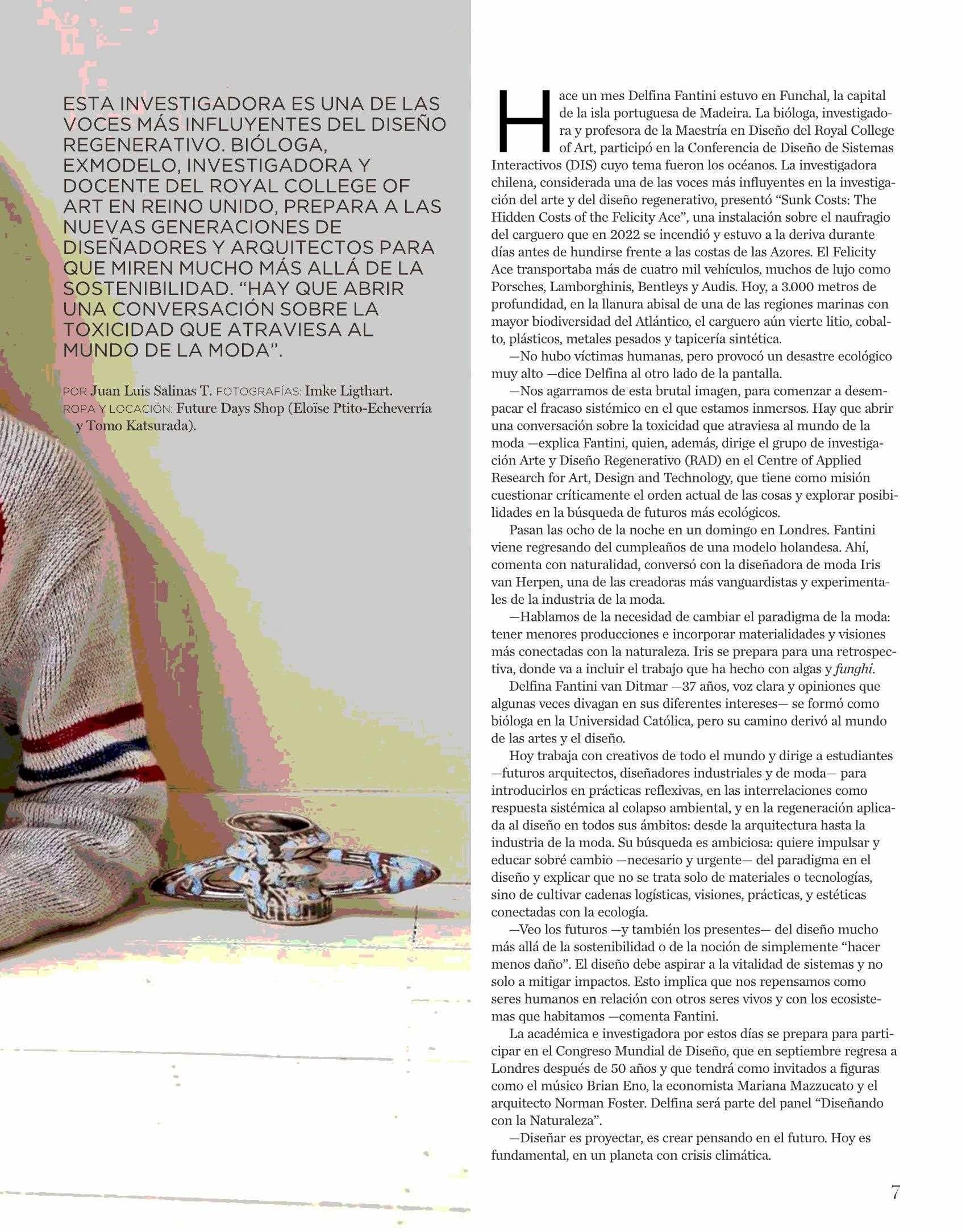 Delfina Fantini La bióloga chilena que redefine el futuro de la moda ." 05-08-2025 El Mercurio |