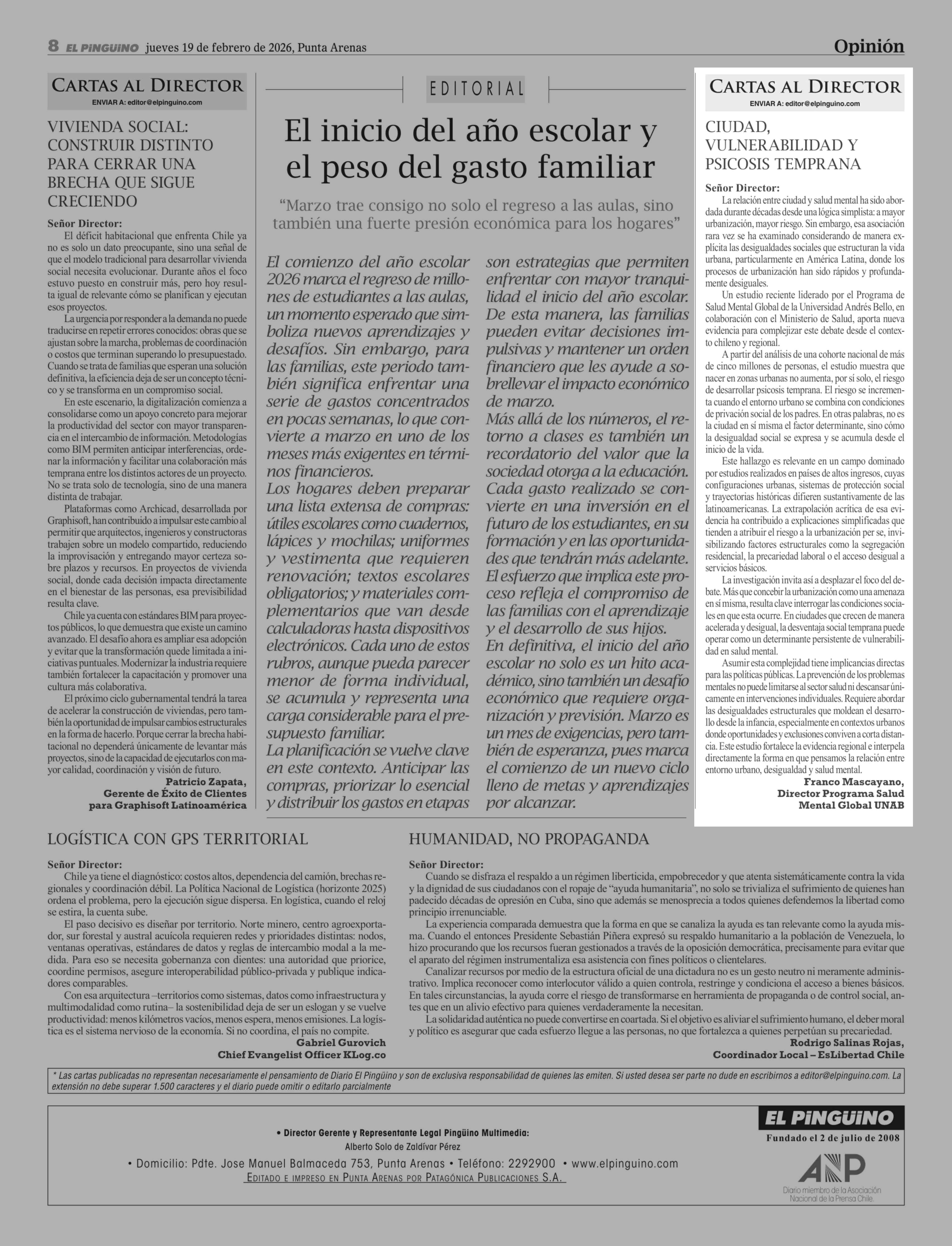 Cartas: CIUDAD, VULNERABILIDAD Y PSICOSIS TEMPRANA 19-02-2026 El Pingüino |