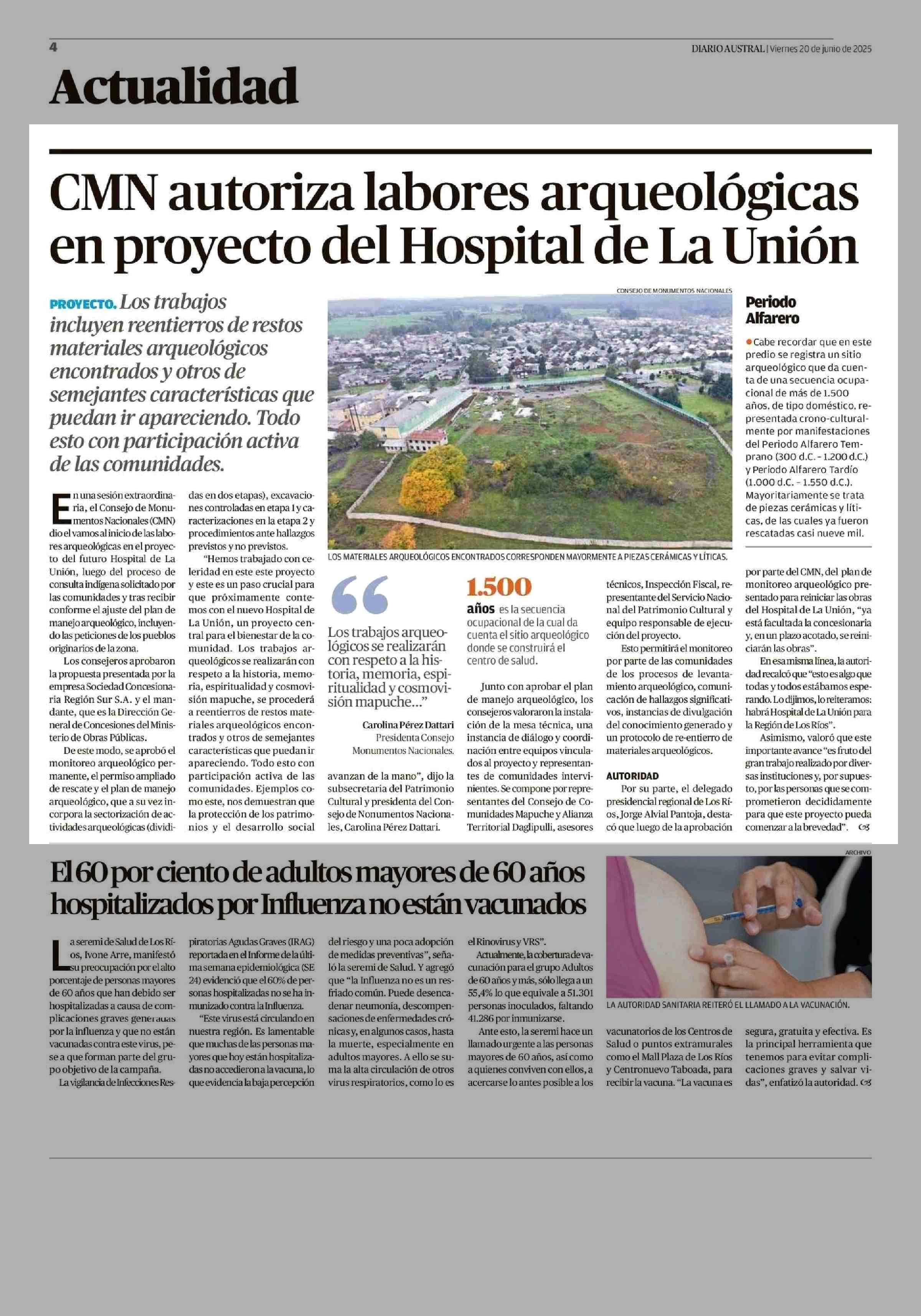 CMN autoriza labores arqueológicas en proyecto del Hospital de La Unión 20-06-2025 Diario Austral Región de Los Ríos |