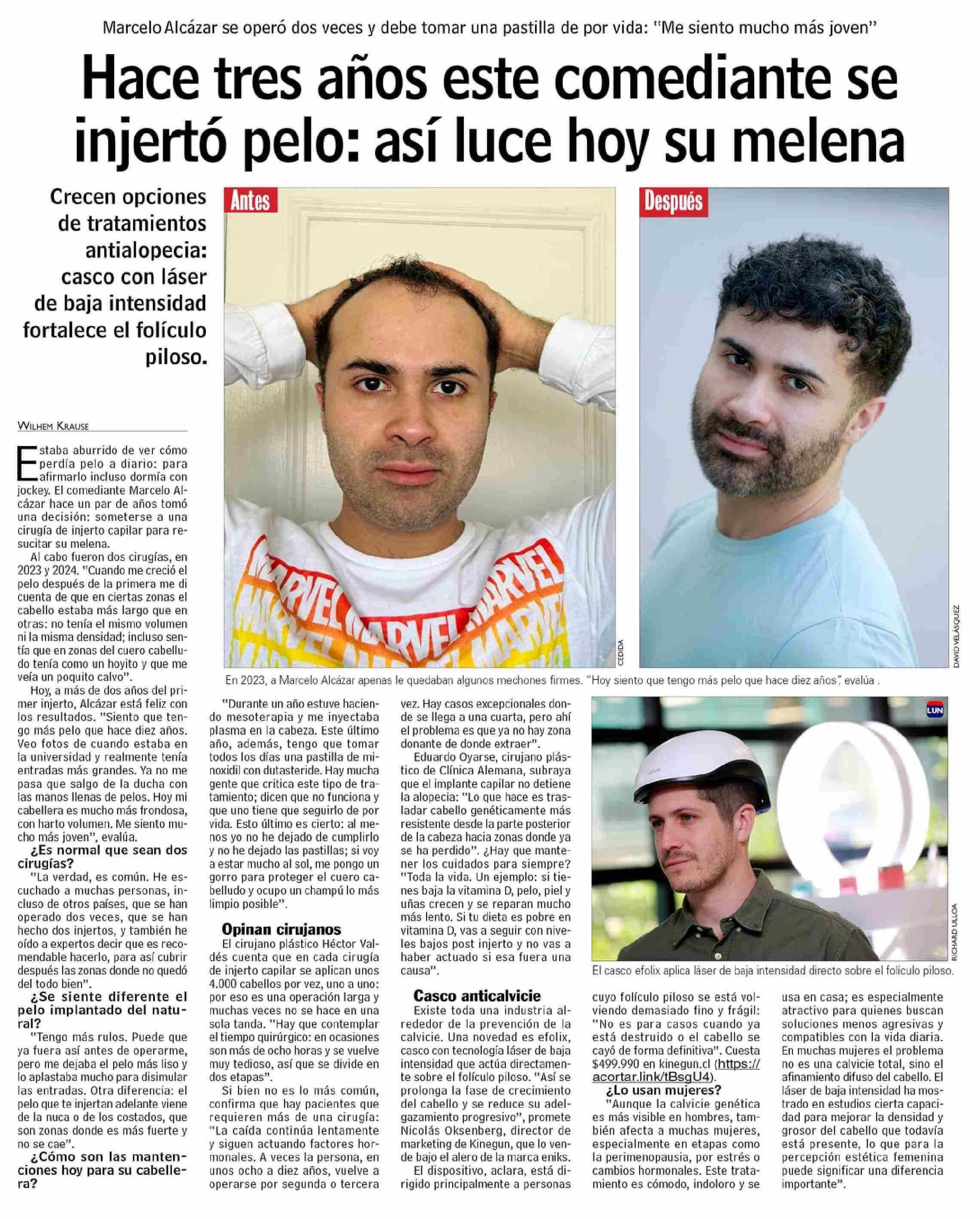 Hace tres años este comediante se injerto pelo: así luce hoy su melena 15-01-2026 Las Últimas Noticias |