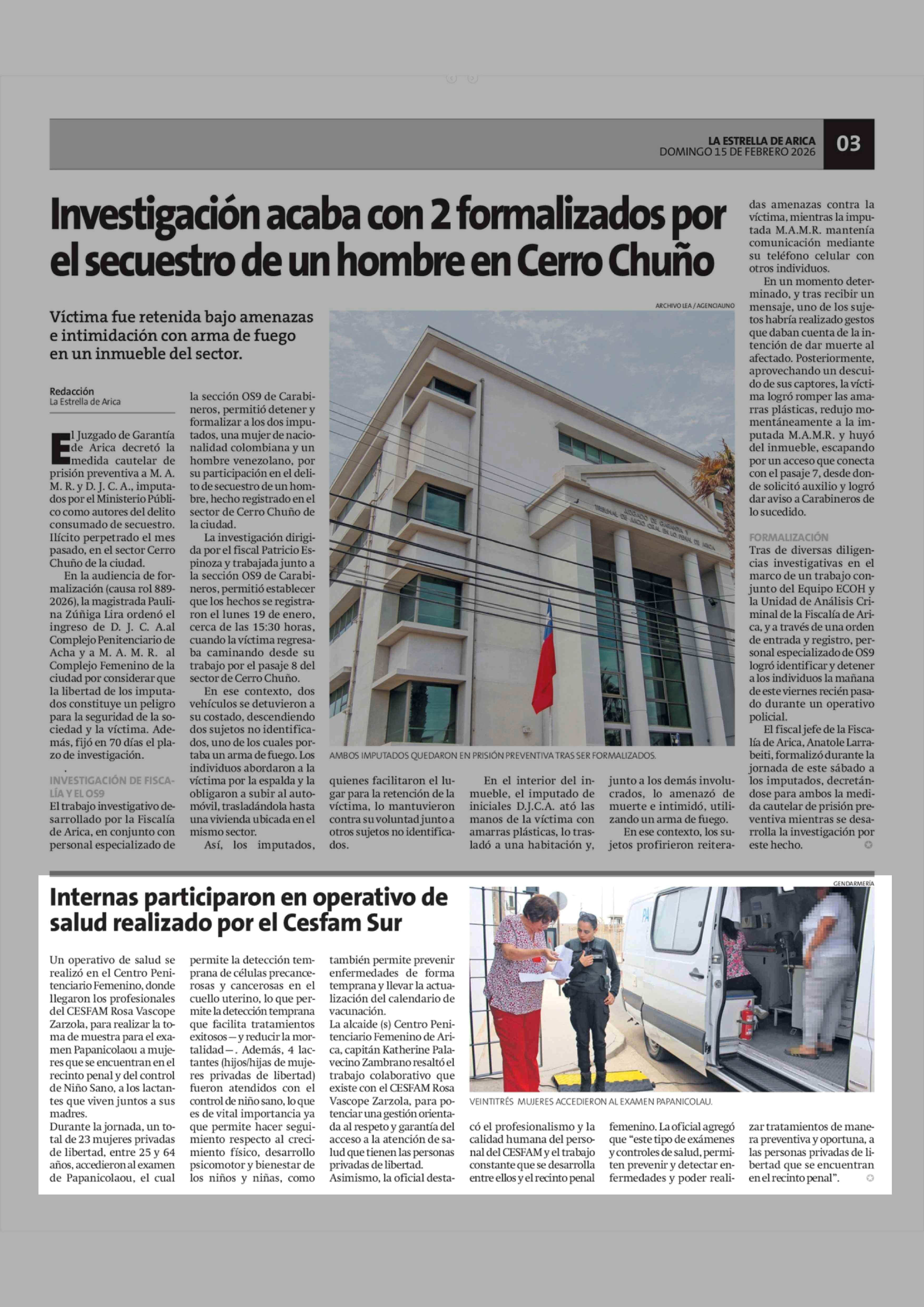 | Fecha: | 15-02-2026 | Sector: | Noticia general | Región: | Región de Arica y Parinacota |