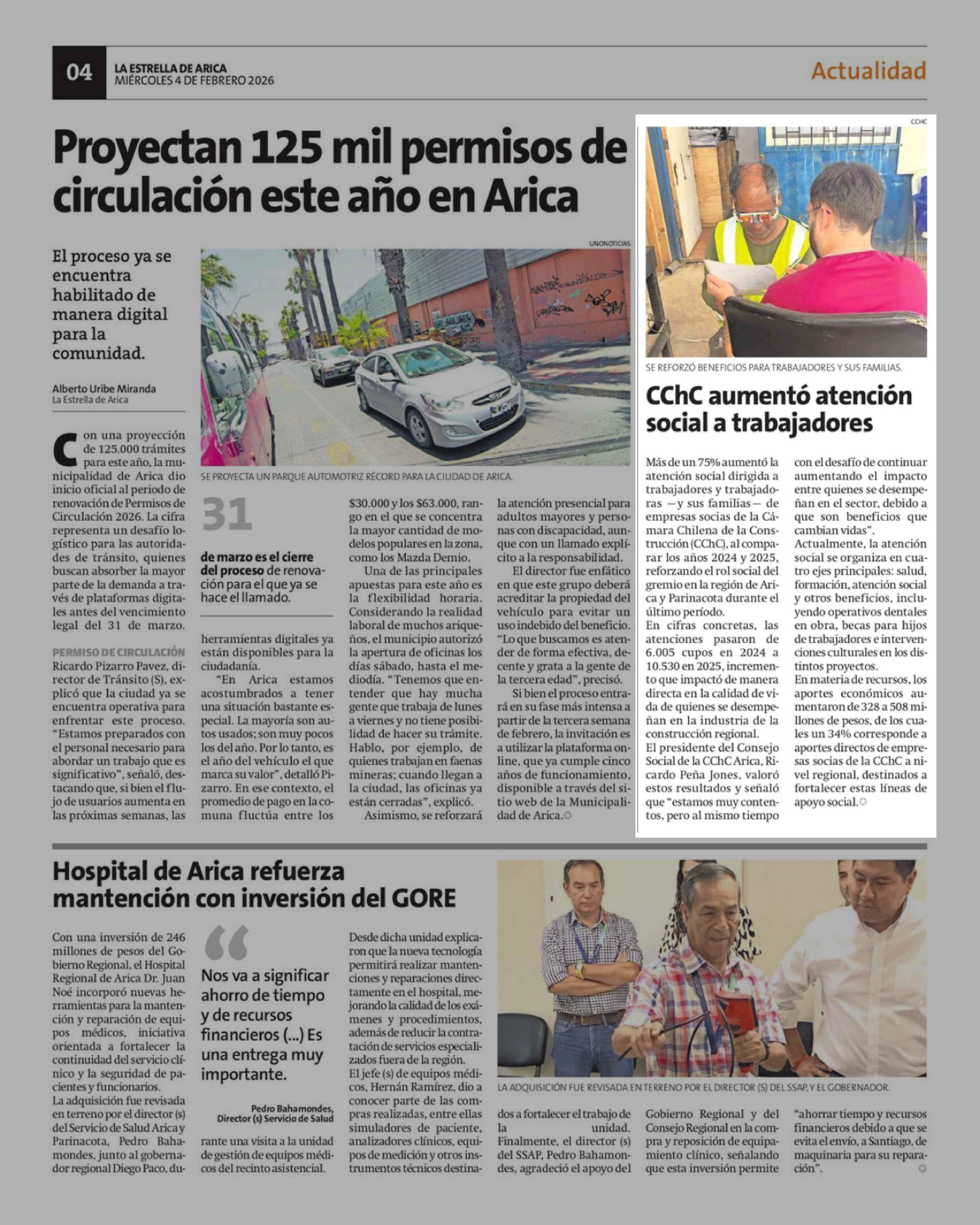 Fecha: 04-02-2026 Sector: Noticia general Región: Región de Arica y Parinacota