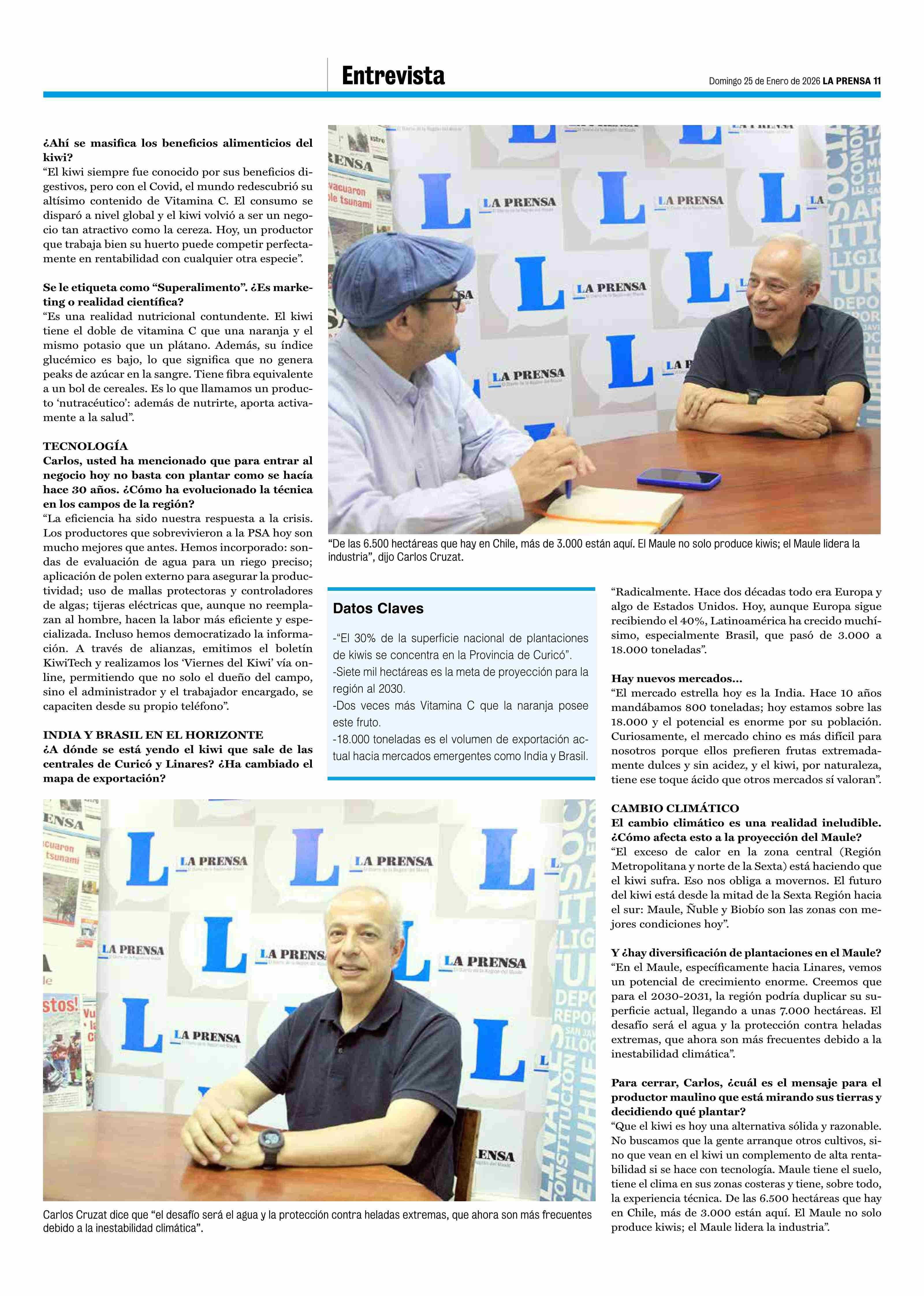 "EI 30% de la superficie total de kiwis en Chile está aquí, en Curicó. La provincia número 1 en la exportación" 25-01-2026 La Prensa de Curicó |