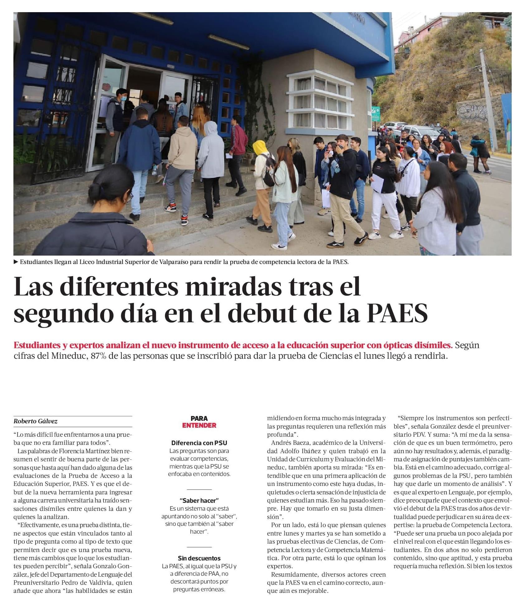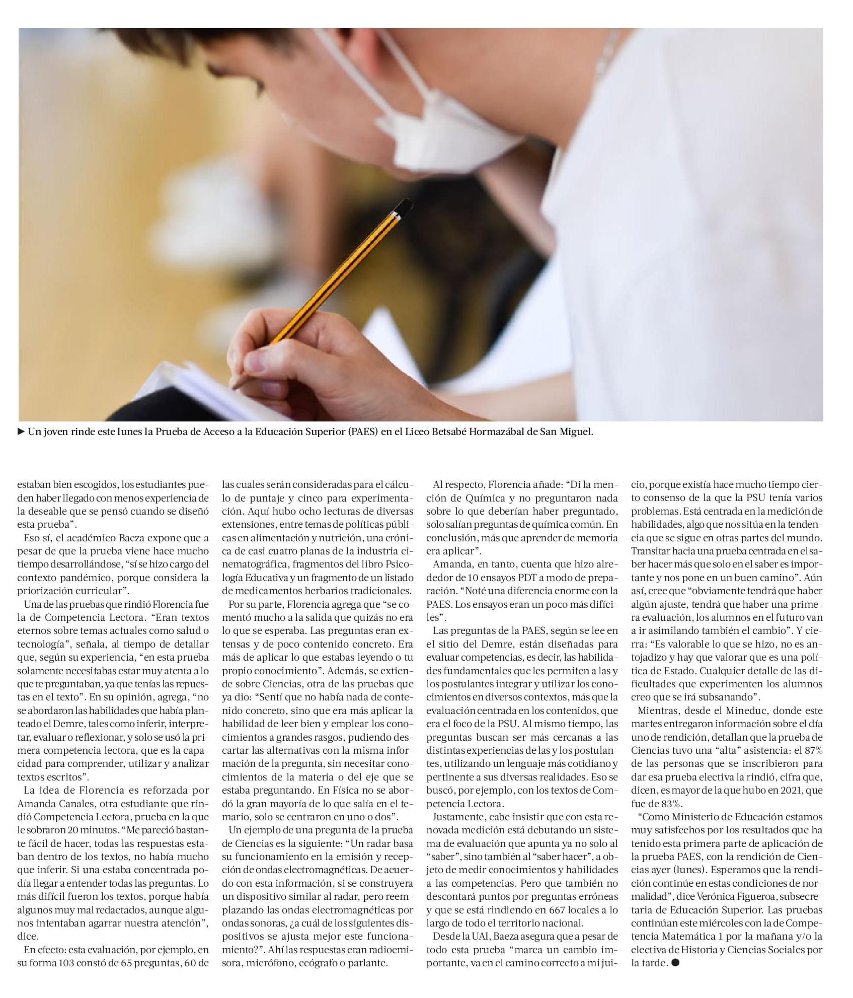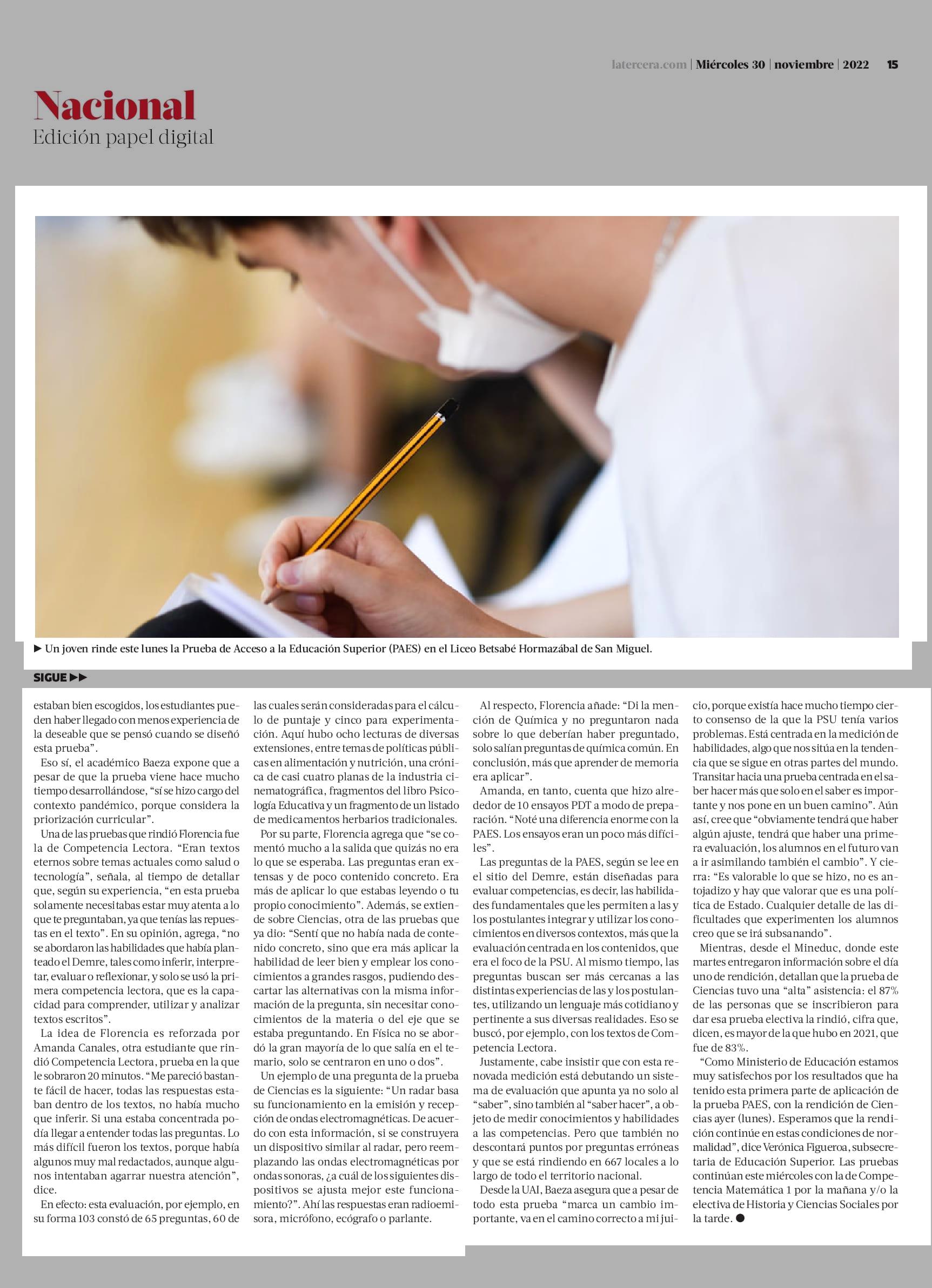 Las diferentes miradas tras el segundo día en el debut de la PAES 30-11-2022 La Tercera |