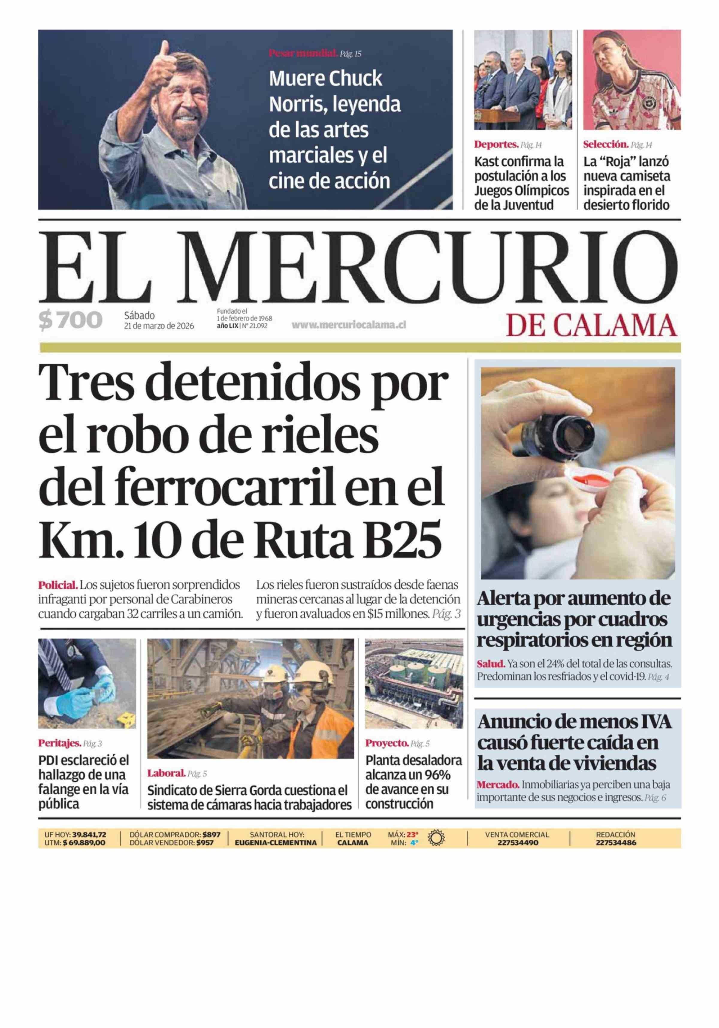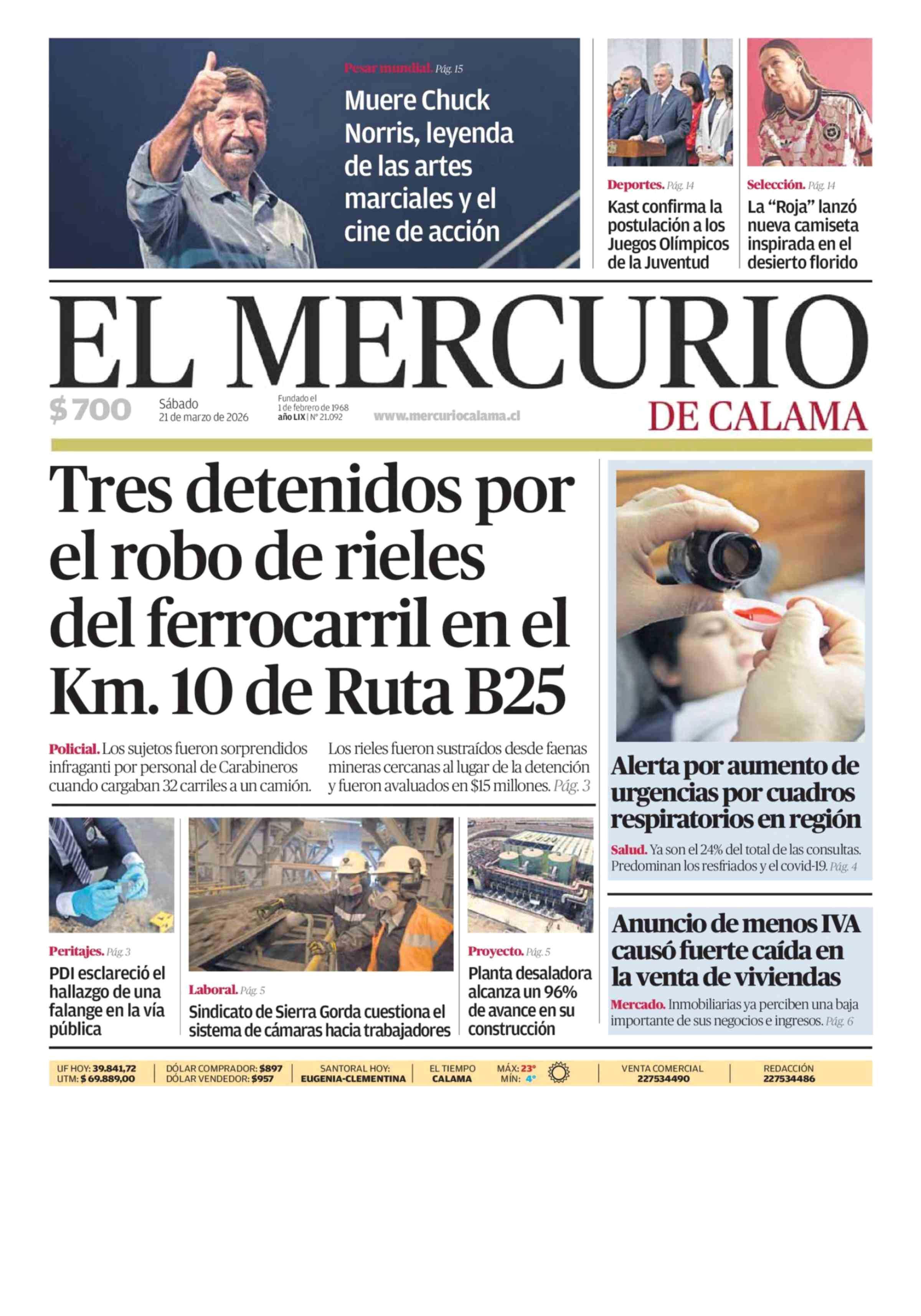 | Fecha: | 21-03-2026 | Sector: | Portada | Región: | Región de Antofagasta |