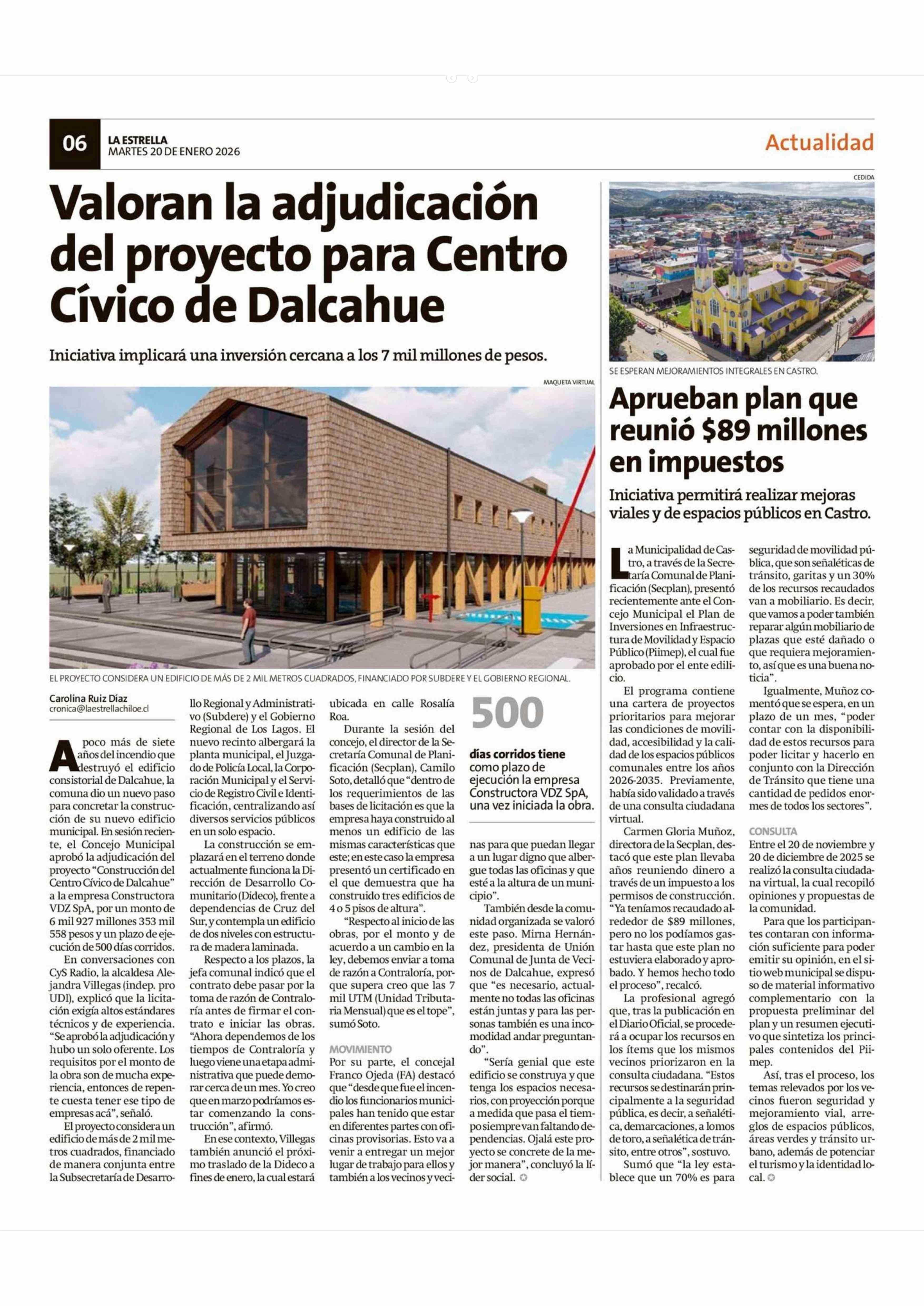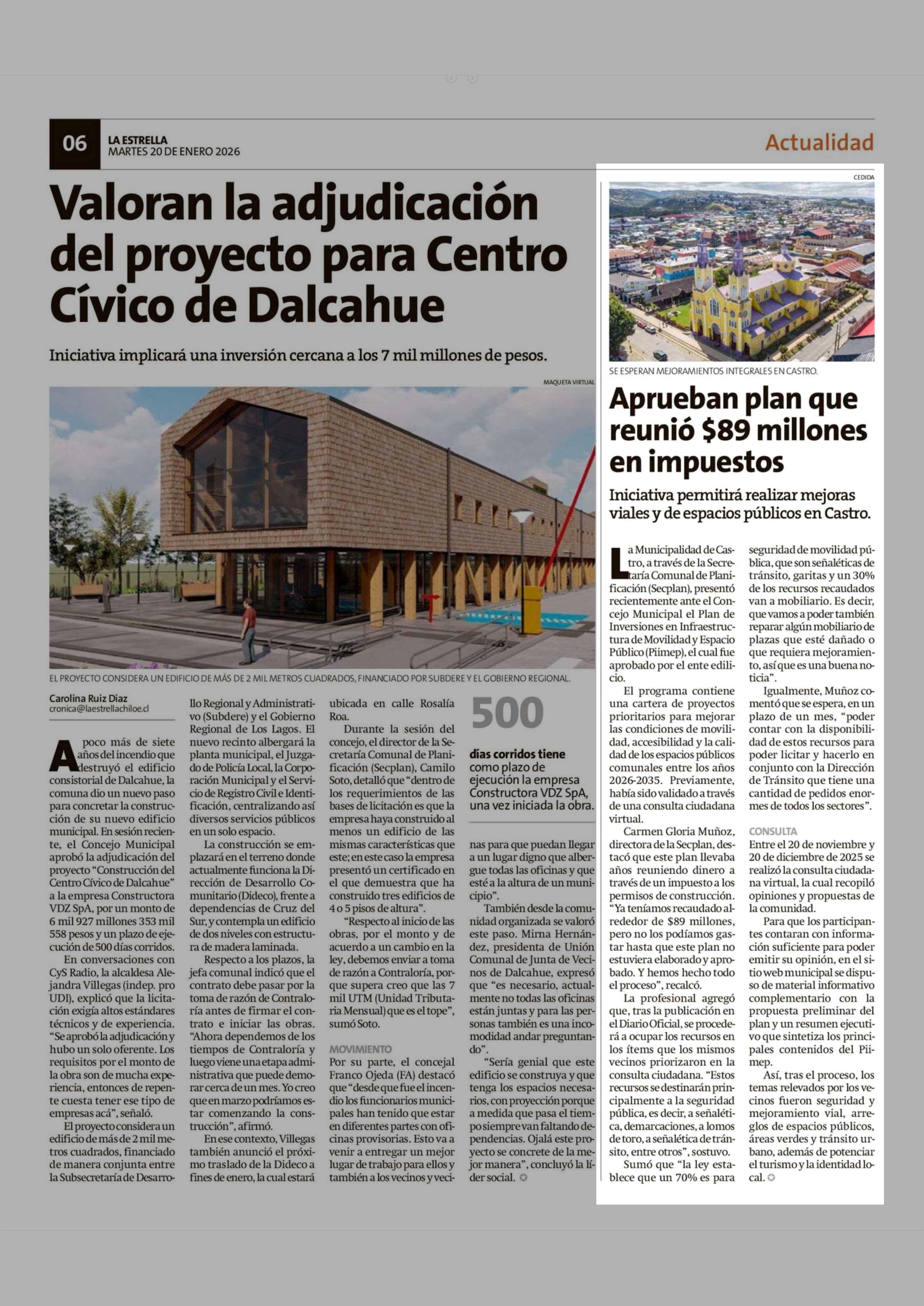 Aprueban plan que reunió $89 millones en impuestos 20-01-2026 La Estrella de Chiloé |