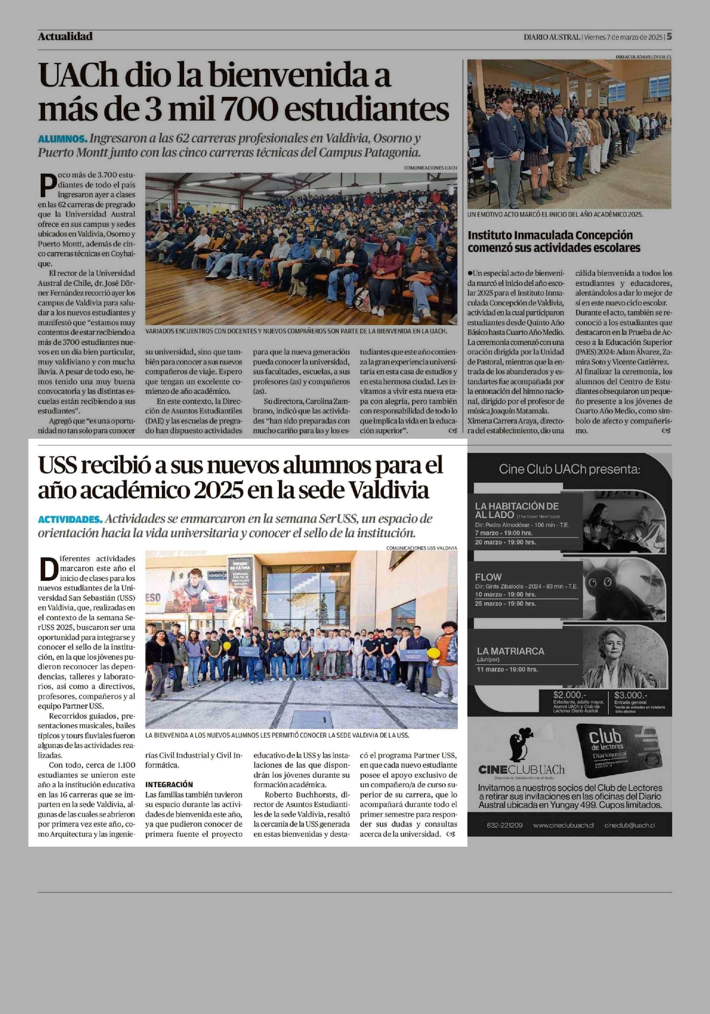 USS recibió a sus nuevos alumnos para el año académico 2025 en la sede Valdivia 07-03-2025 Diario Austral Región de Los Ríos |