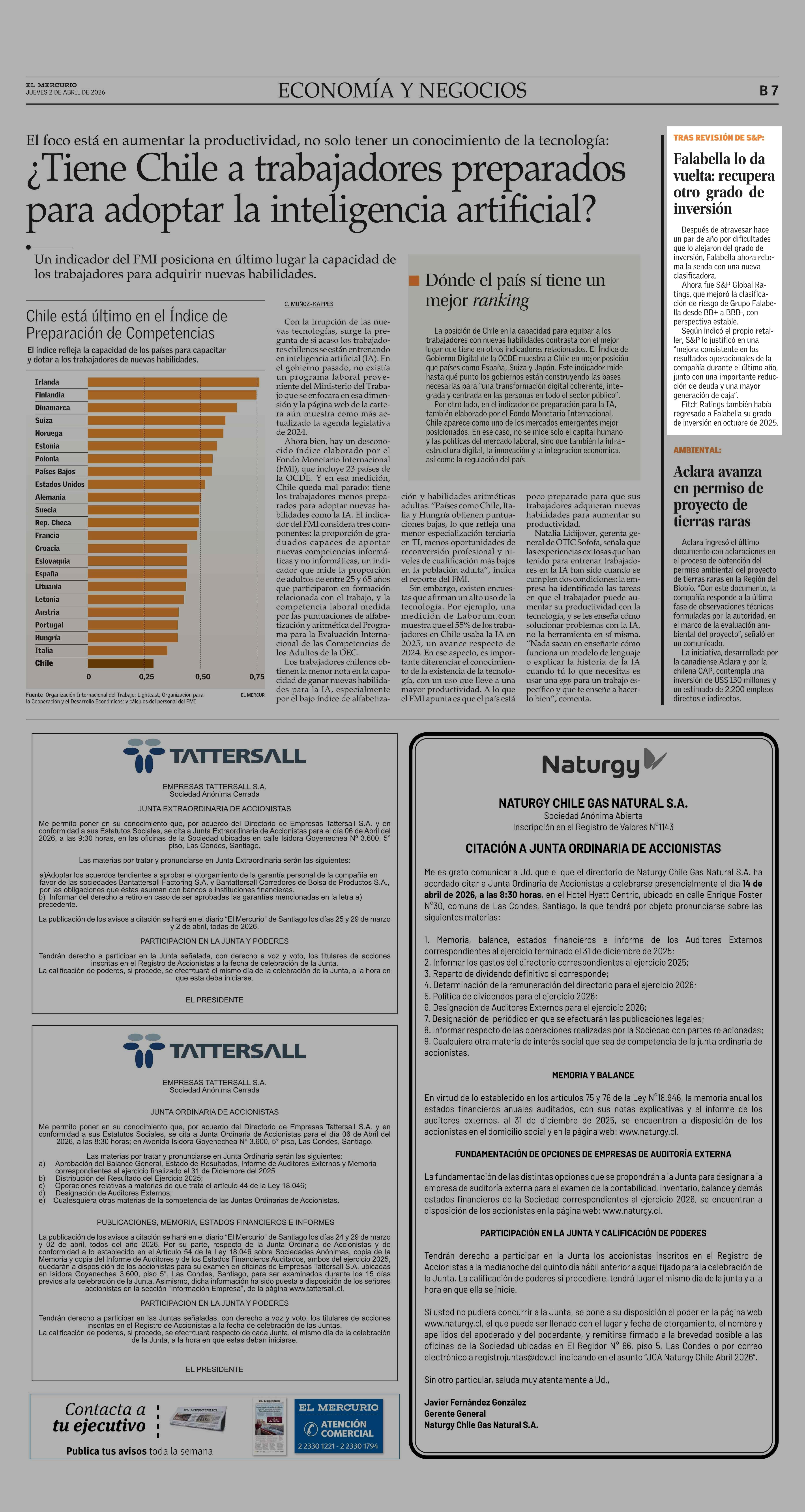 Falabella lo da vuelta: recupera otro grado de inversión 02-04-2026 El Mercurio |