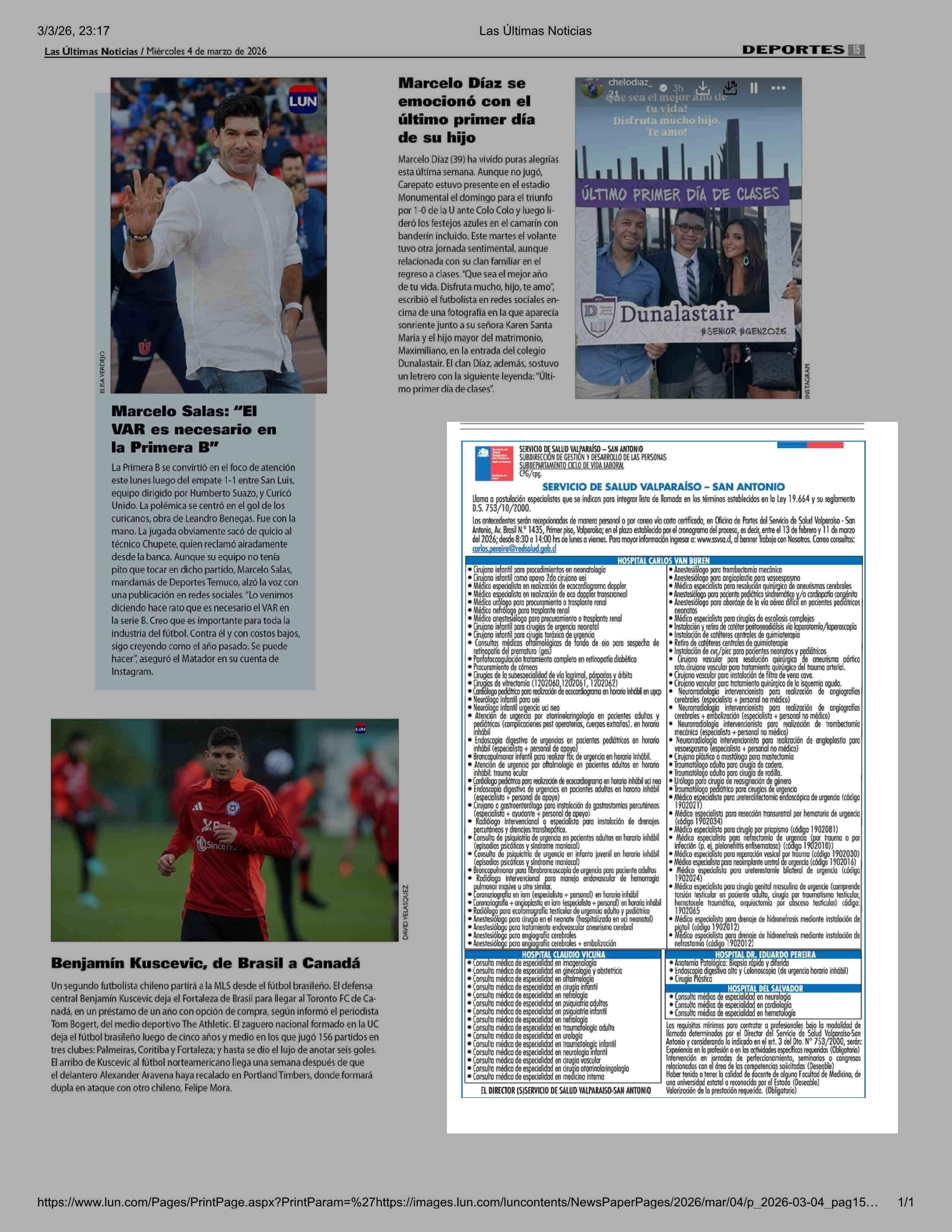 AVISO LICITACIONES: SERVICIO DE SALUD VALPARAISO SAN ANTONIO 04-03-2026 Las Últimas Noticias |