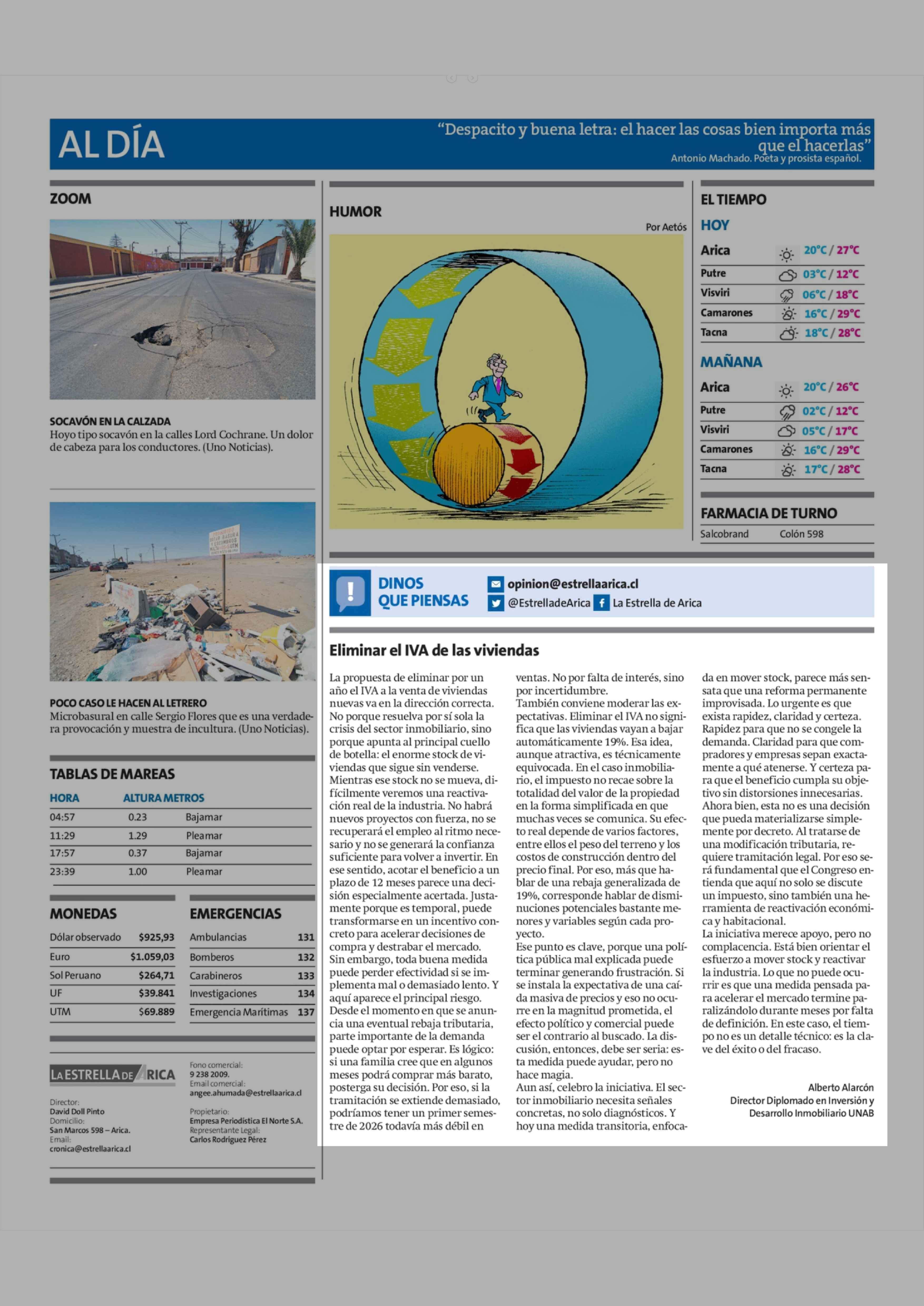 Fuente: La Estrella de Arica (La Estrella de Arica) Página(s): 6