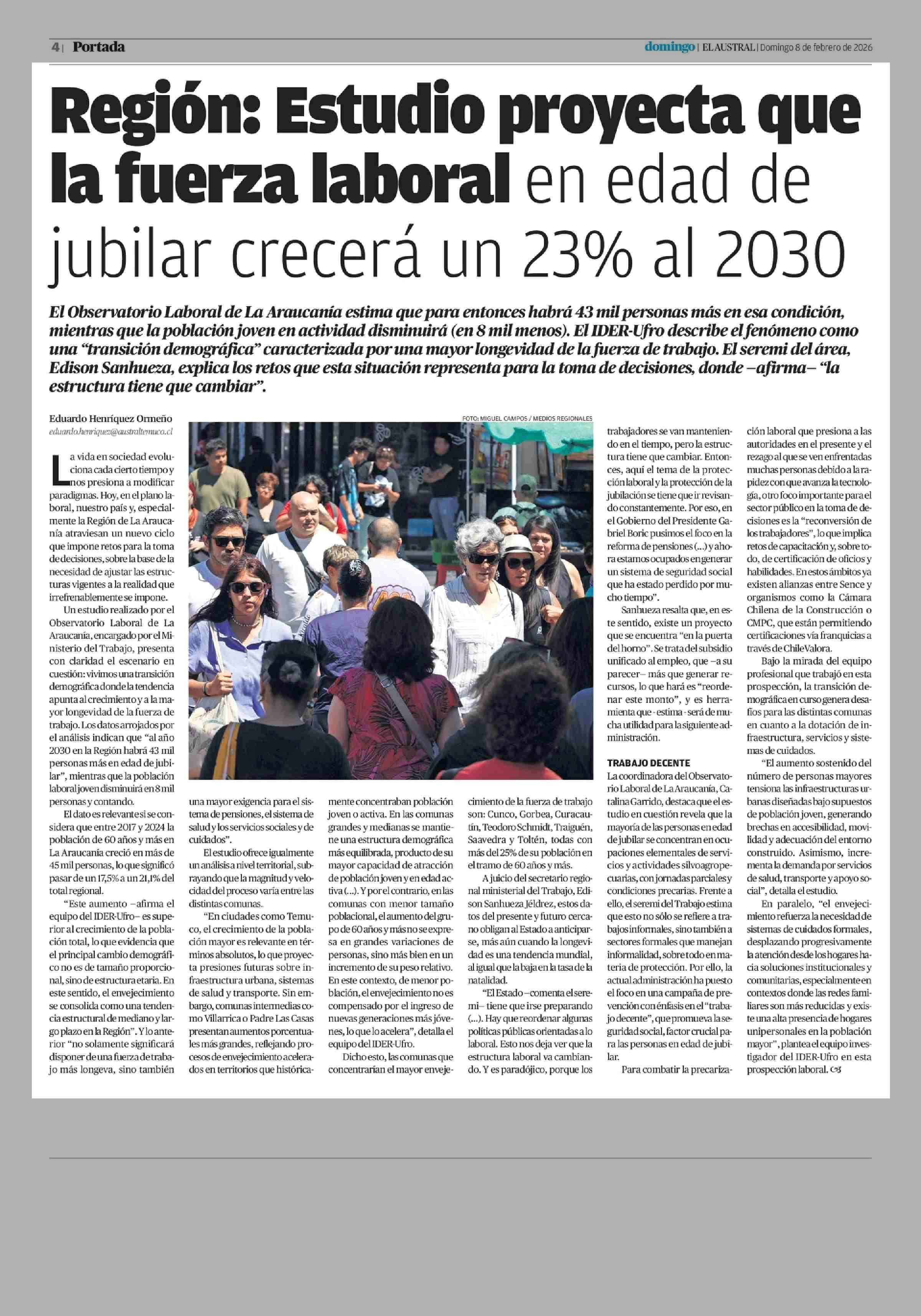 Región: Estudio proyecta que la fuerza laboral en edad de jubilar crecerá un 23% al 2030 08-02-2026 El Austral de la Araucanía |