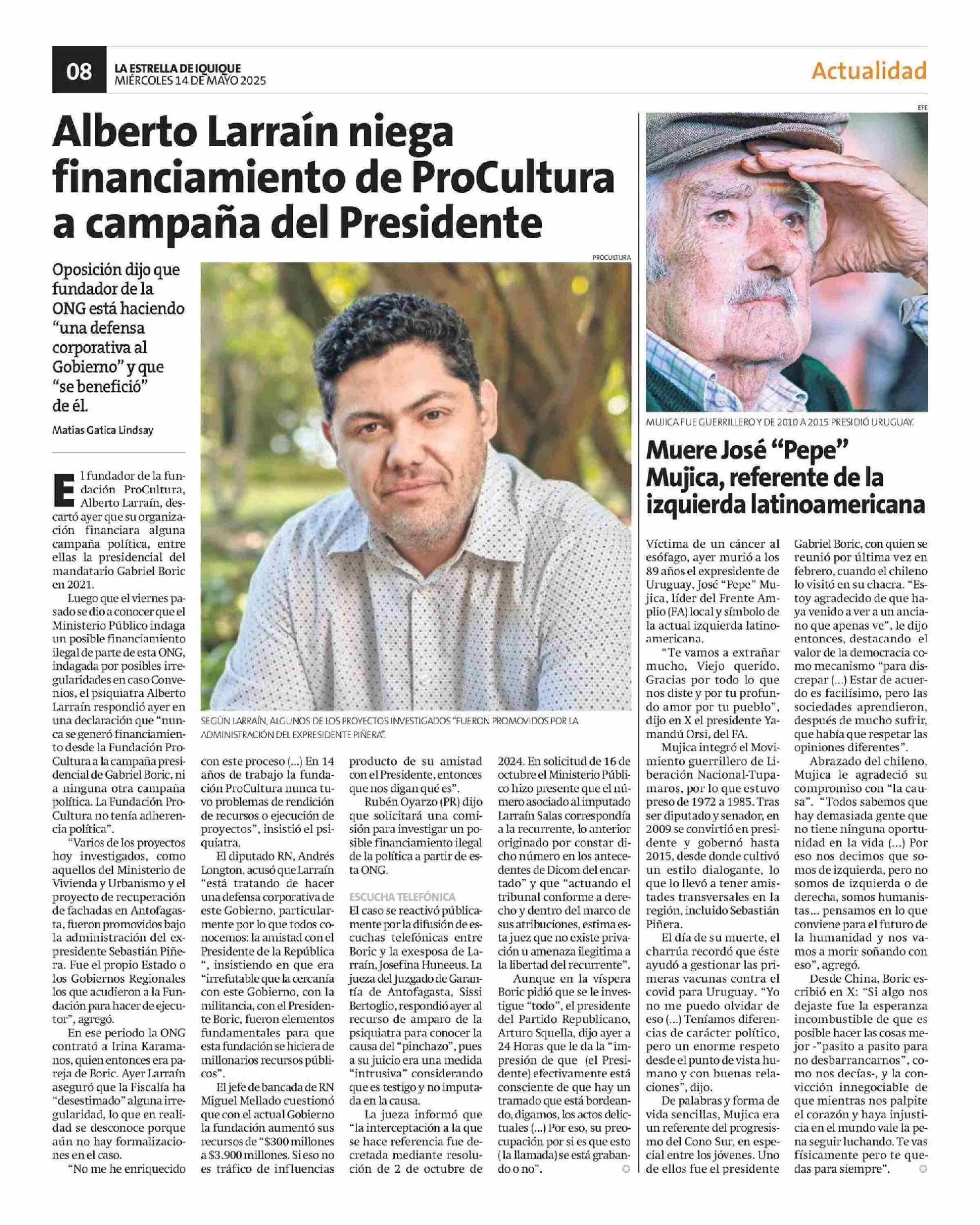 Muere José “Pepe” Mujica, referente de la izquierda latinoamericana 14-05-2025 La Estrella de Iquique |