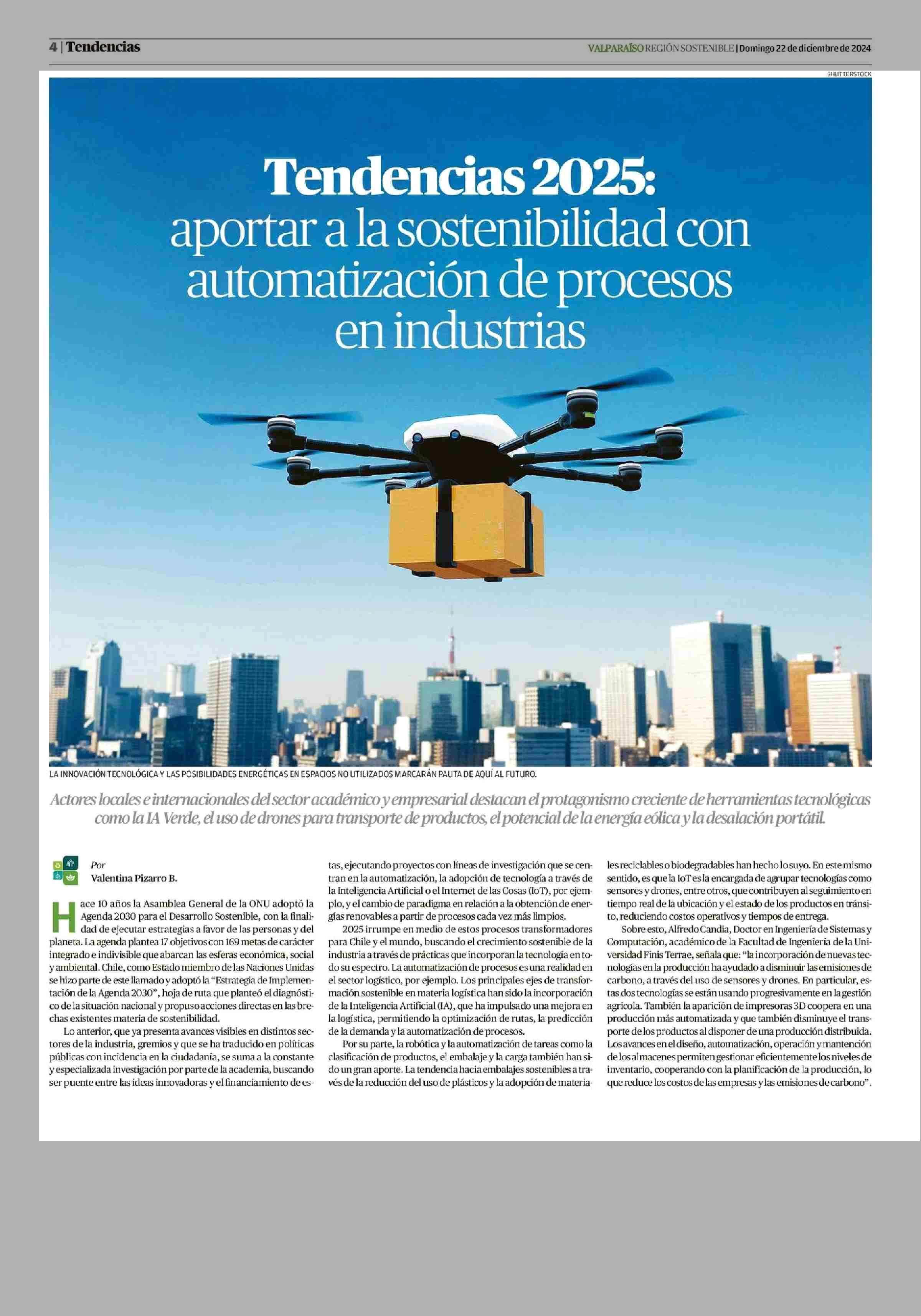 Tendencias 2025: aportar ala sostenibilidad con automatización de procesos en industrias 22-12-2024 El Mercurio de Valparaíso |