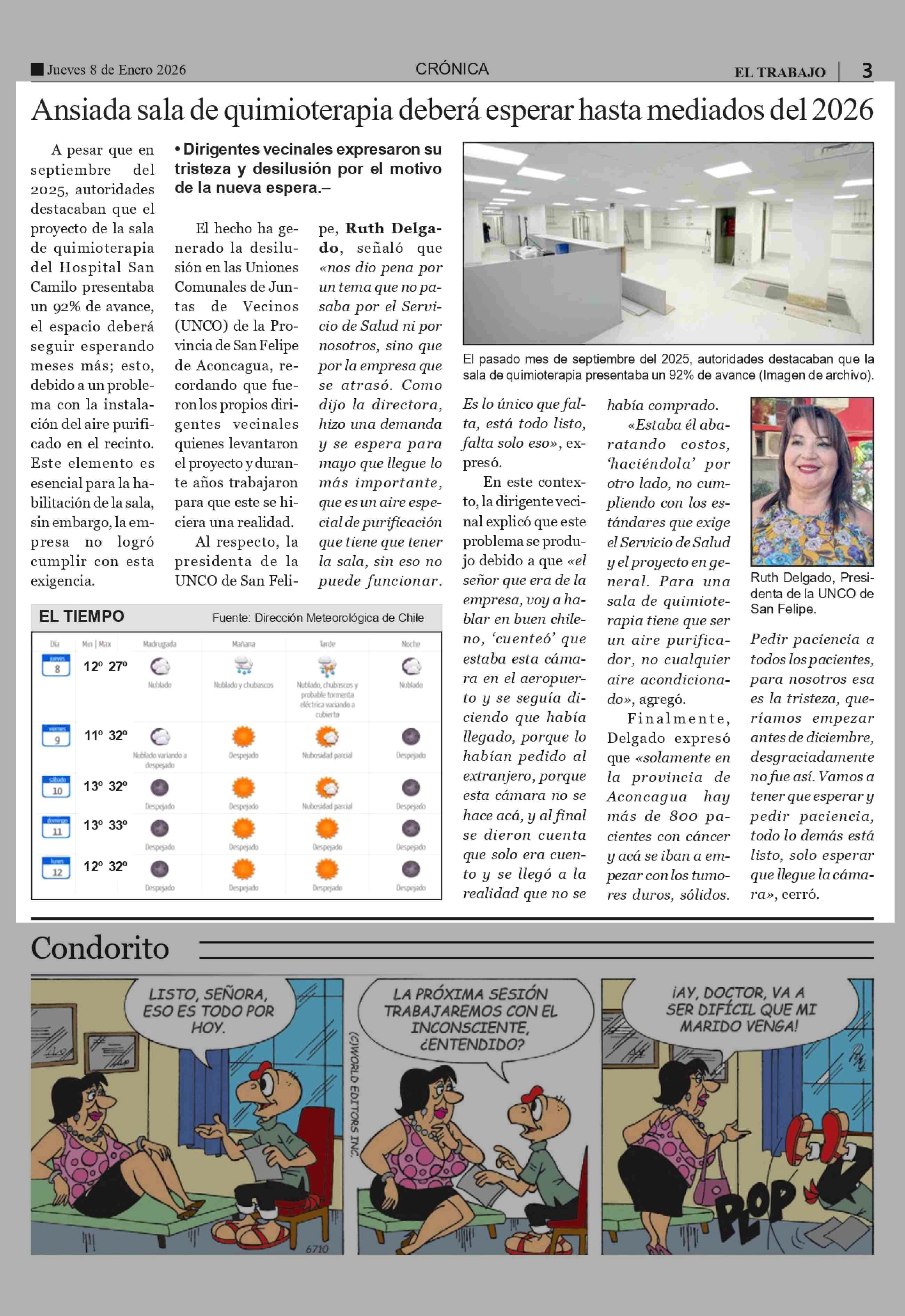 Título: Ansiada sala de quimioterapia deberá esperar hasta mediados del 2026
