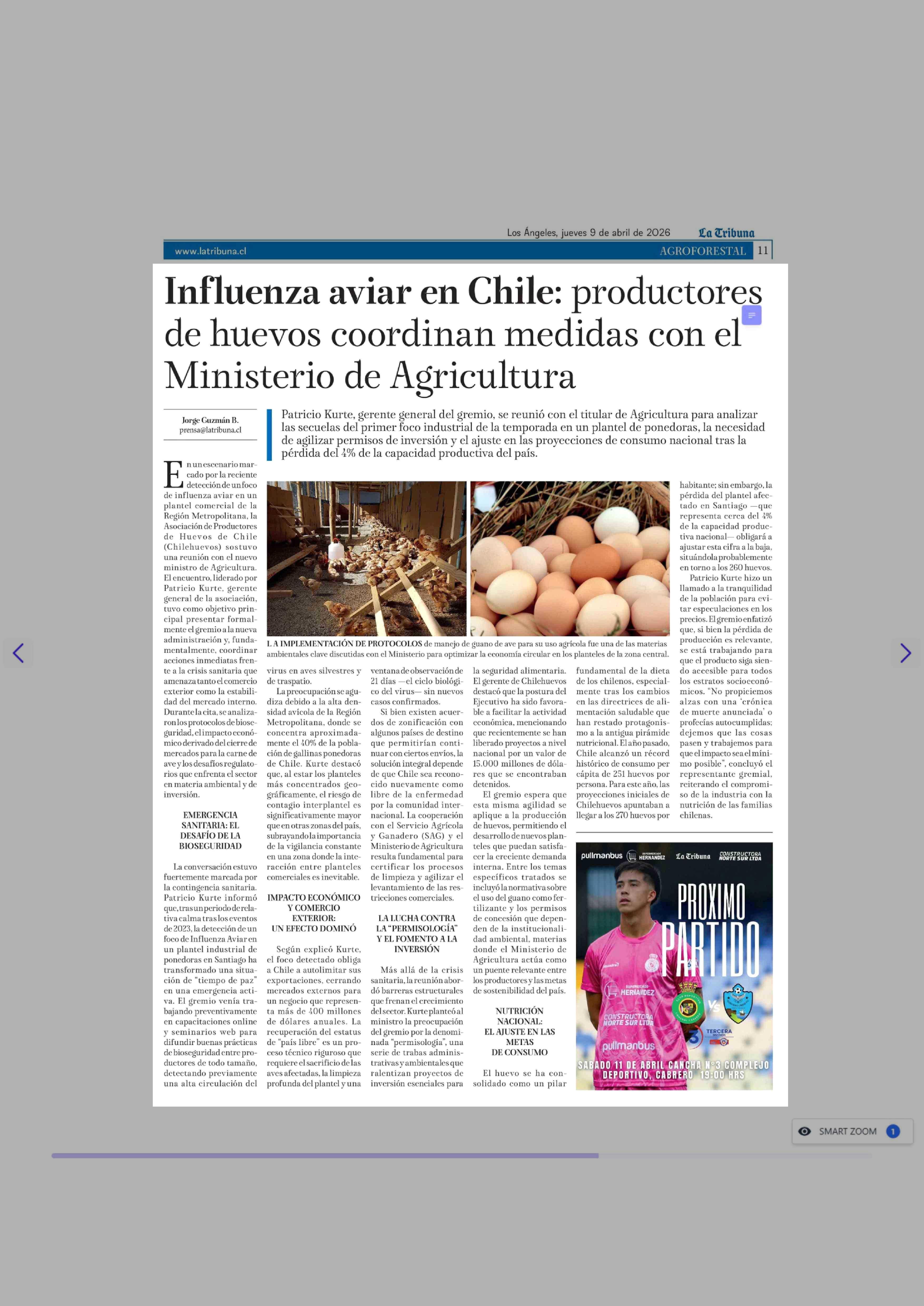 Título: Influenza aviar en Chile: productores de huevos coordinan medidas con el Ministerio de Agricultura