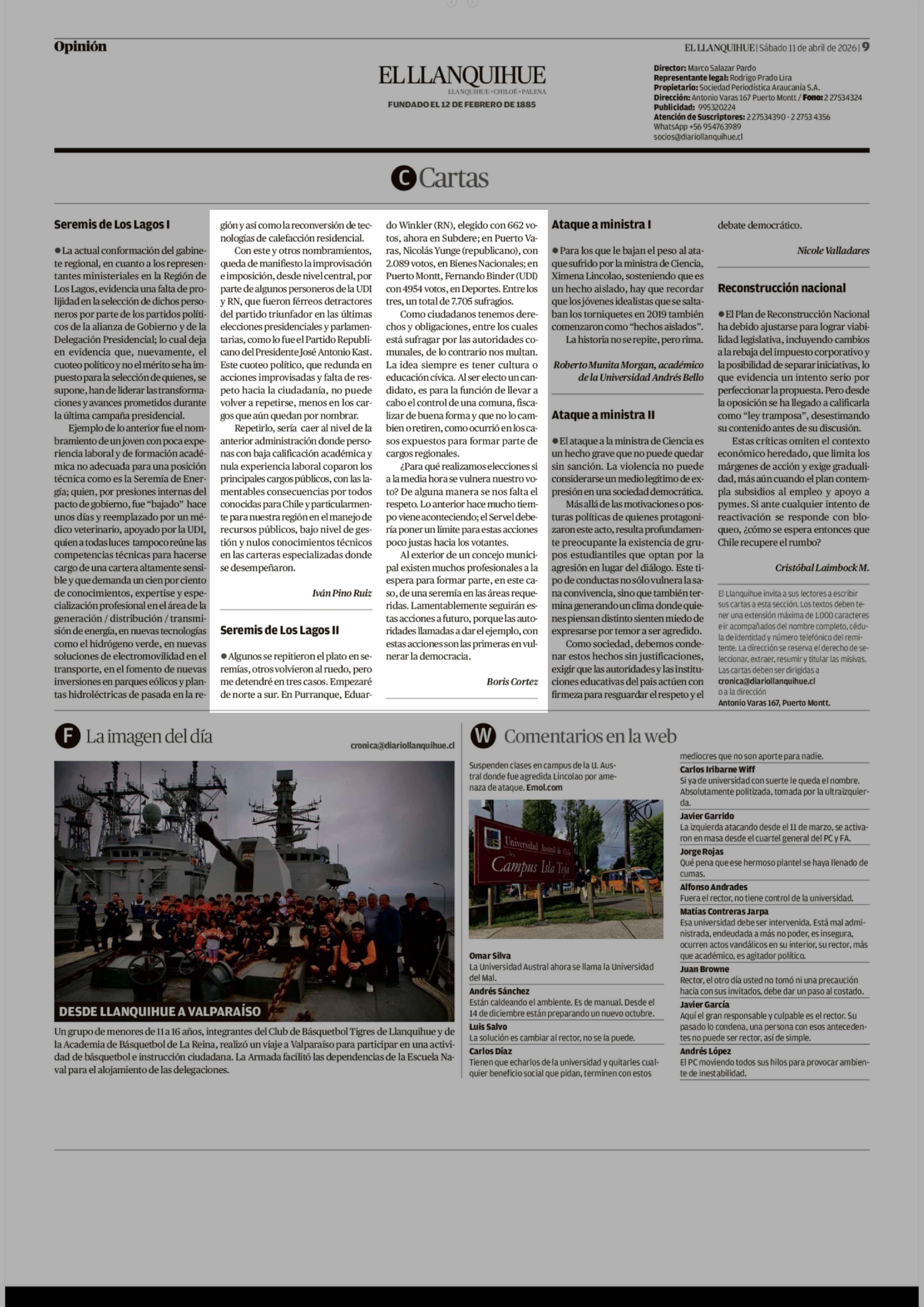 Cartas: Seremis de Los Lagos II 11-04-2026 El Llanquihue |