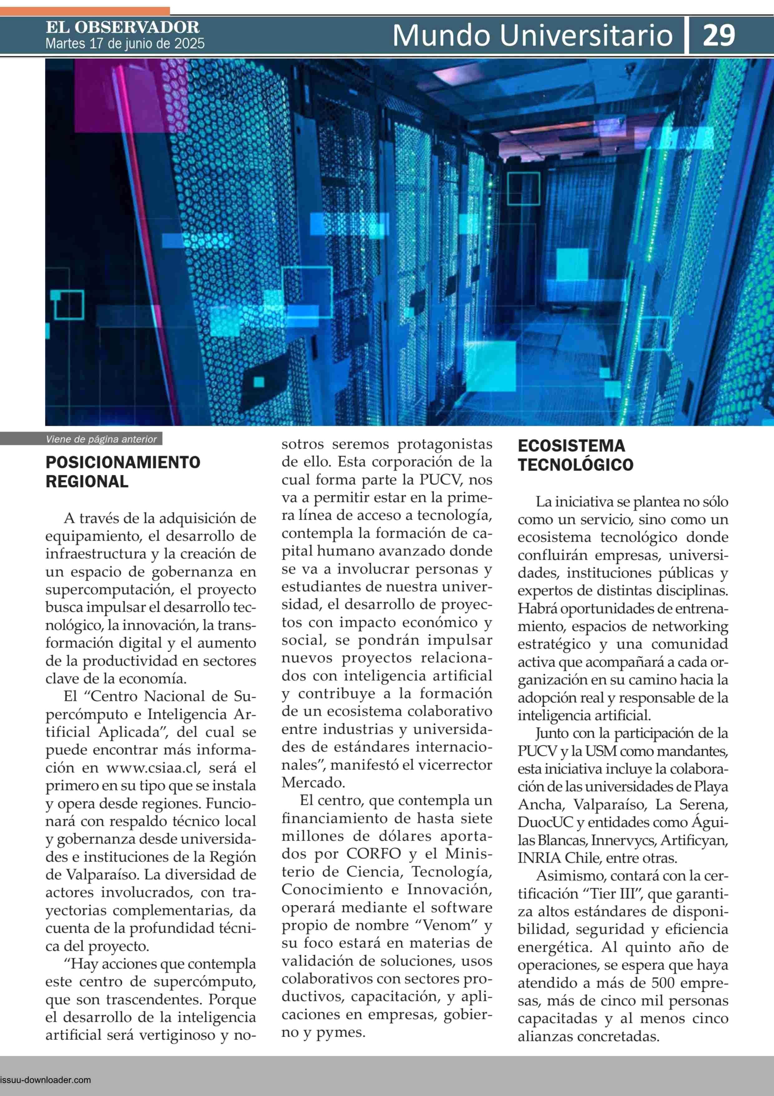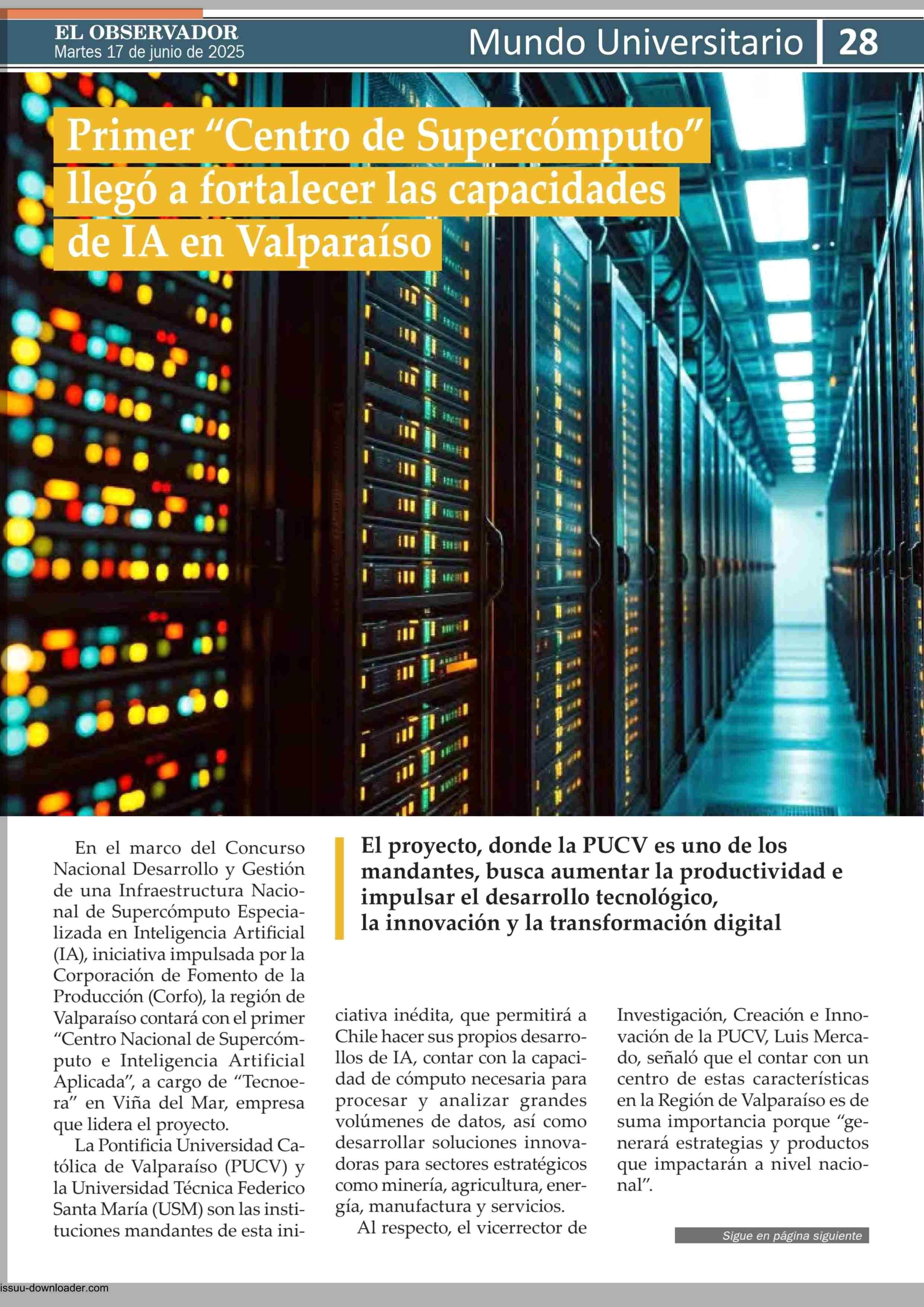 Título: Primer "Centro Supercomputo" llego a fortalecer las capacidades de IA en Valparaíso