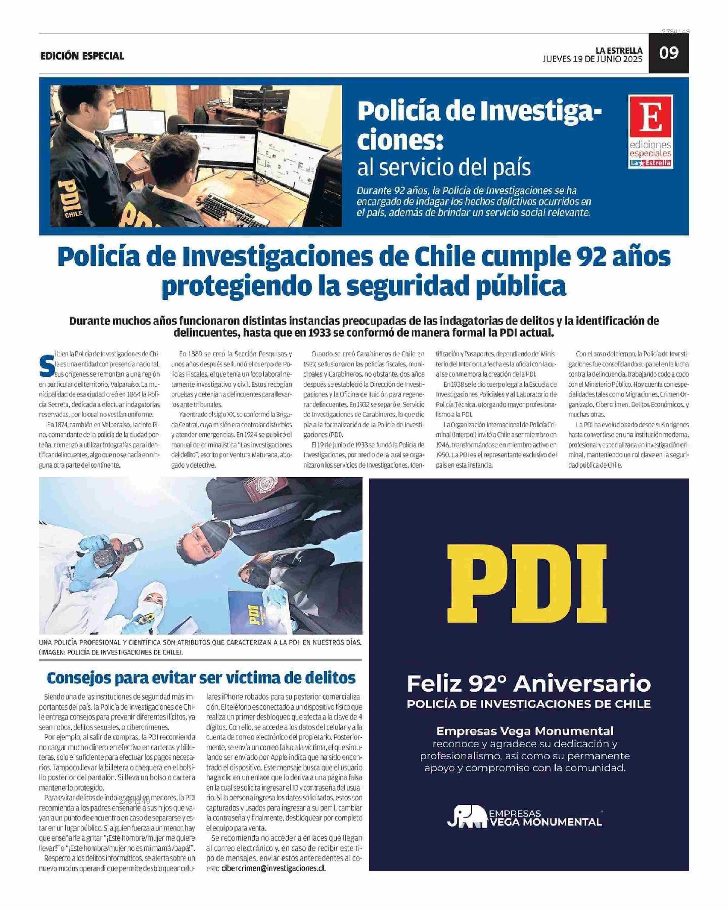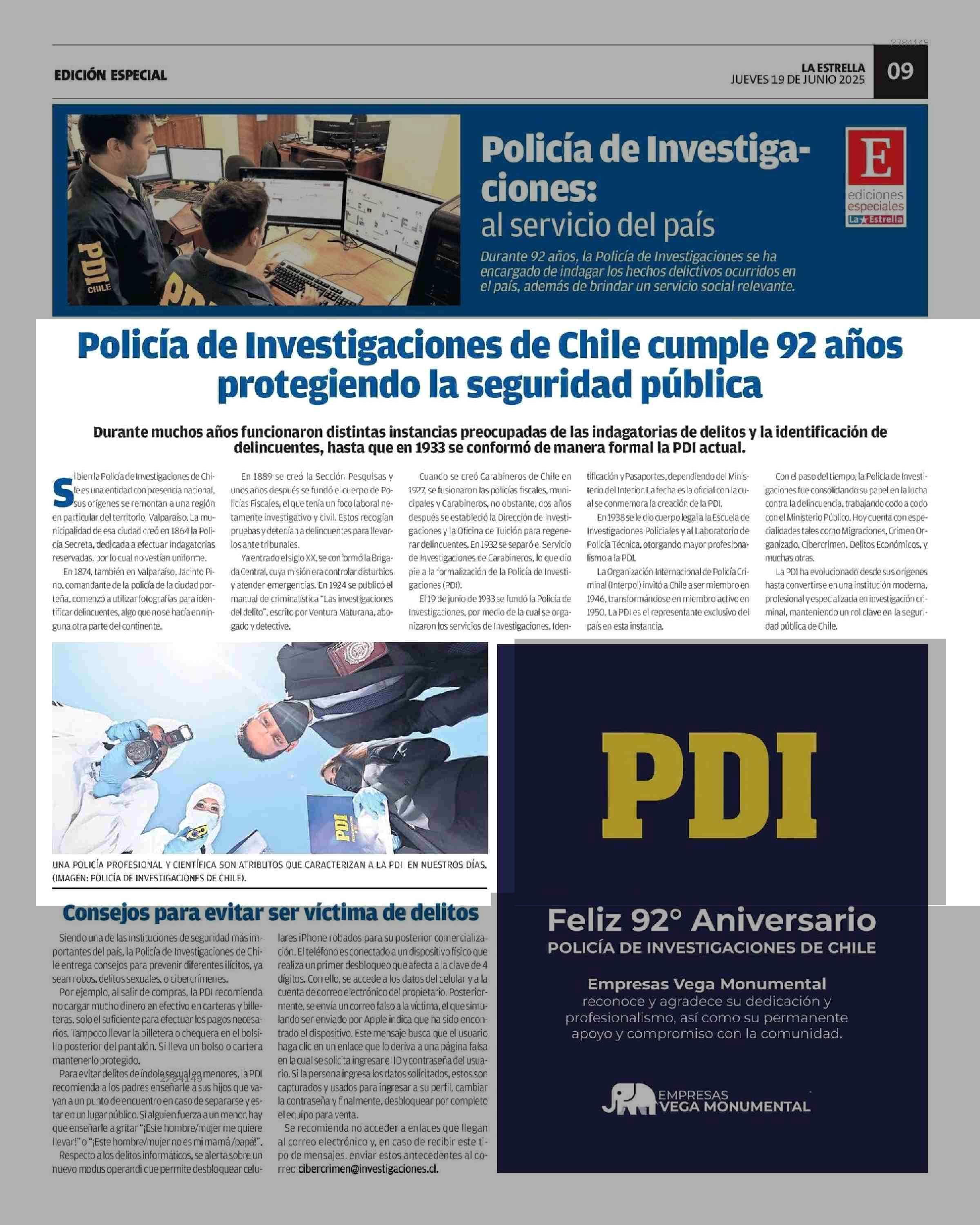 Policía de Investigaciones de Chile cumple 92 años protegiendo la seguridad pública 19-06-2025 La Estrella de Concepción |