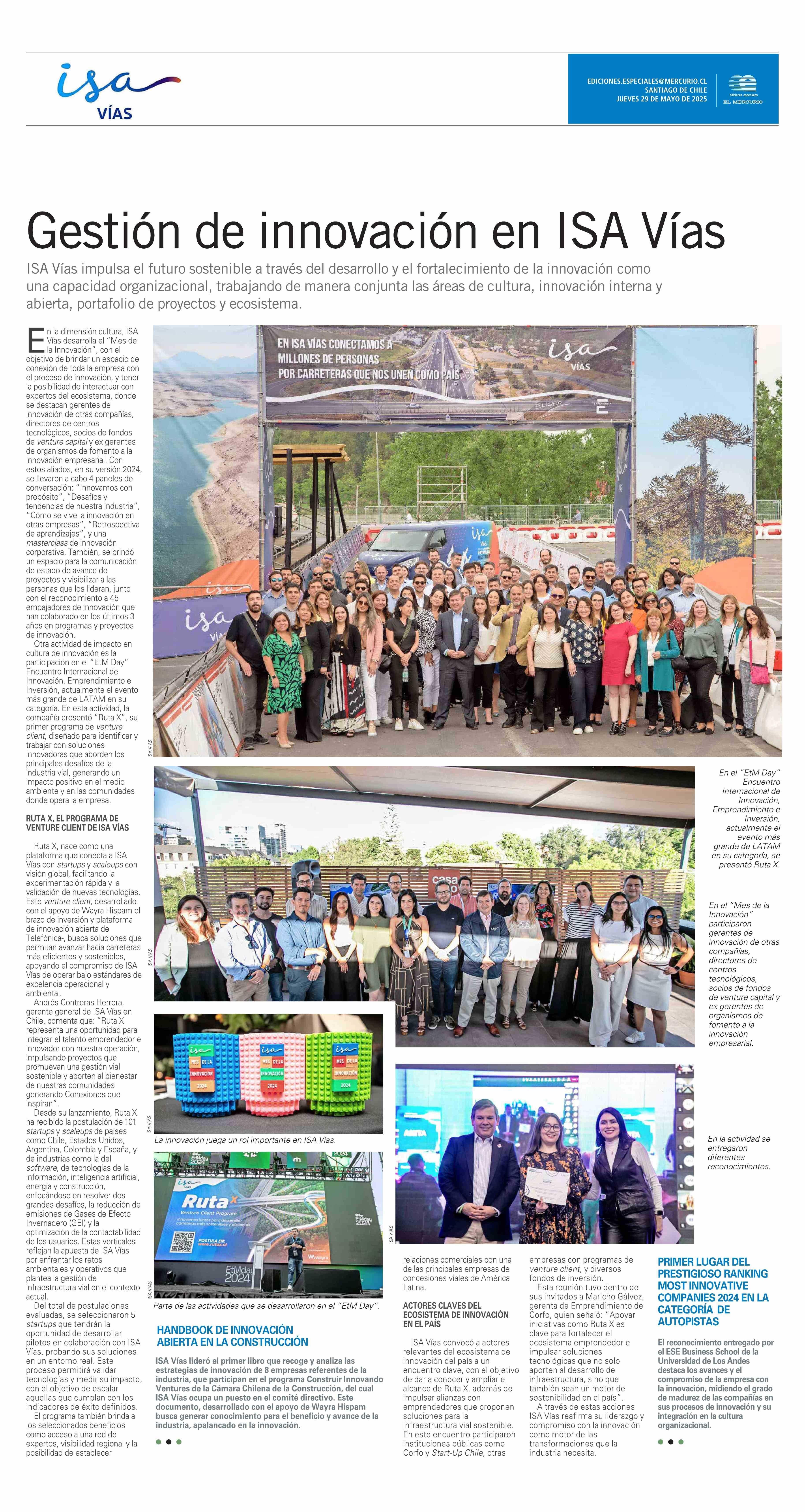 Gestión de innovación en ISA Vías 29-05-2025 El Mercurio |
