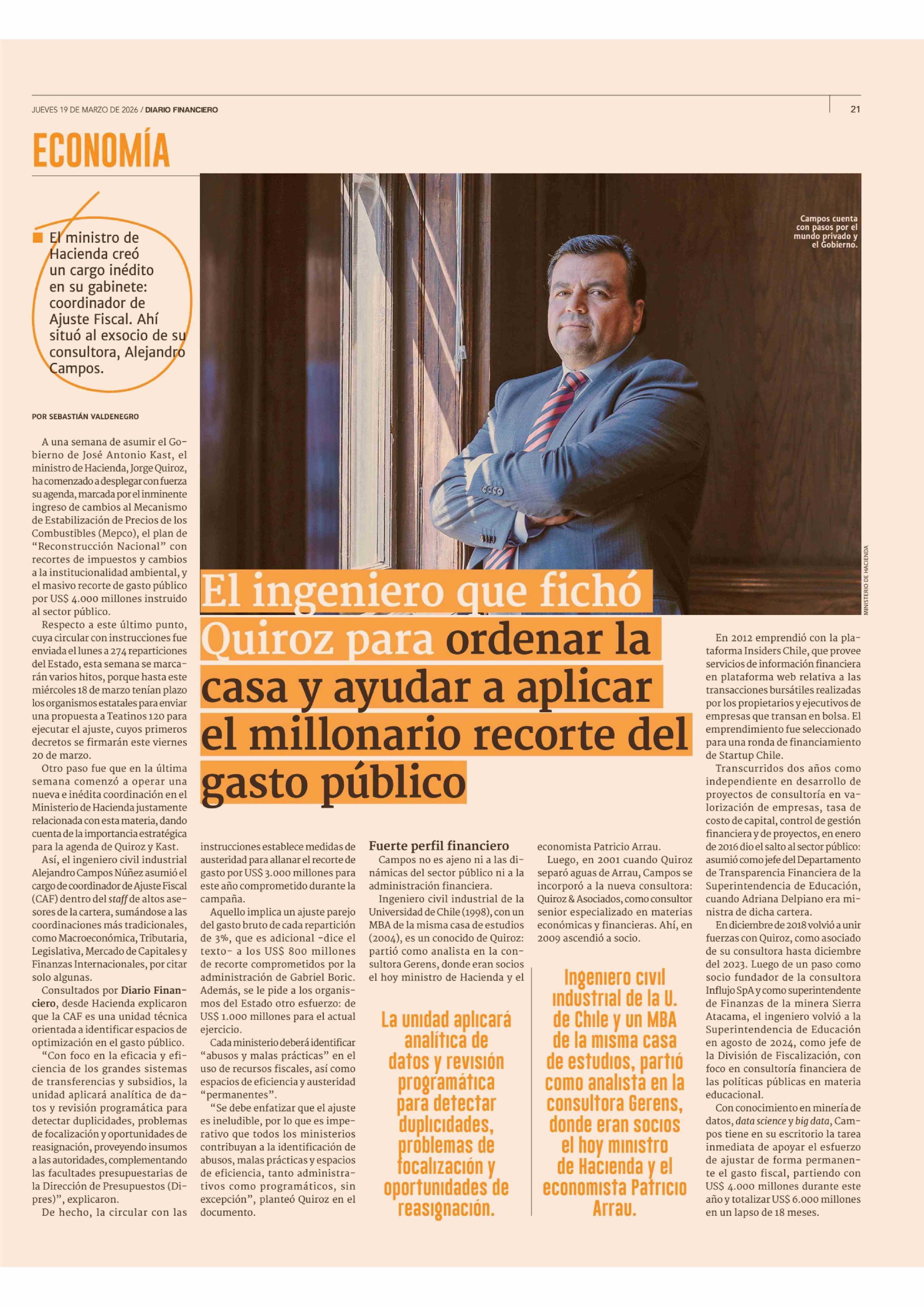 Fuente: Diario Financiero (Diario Financiero) Página(s): 21