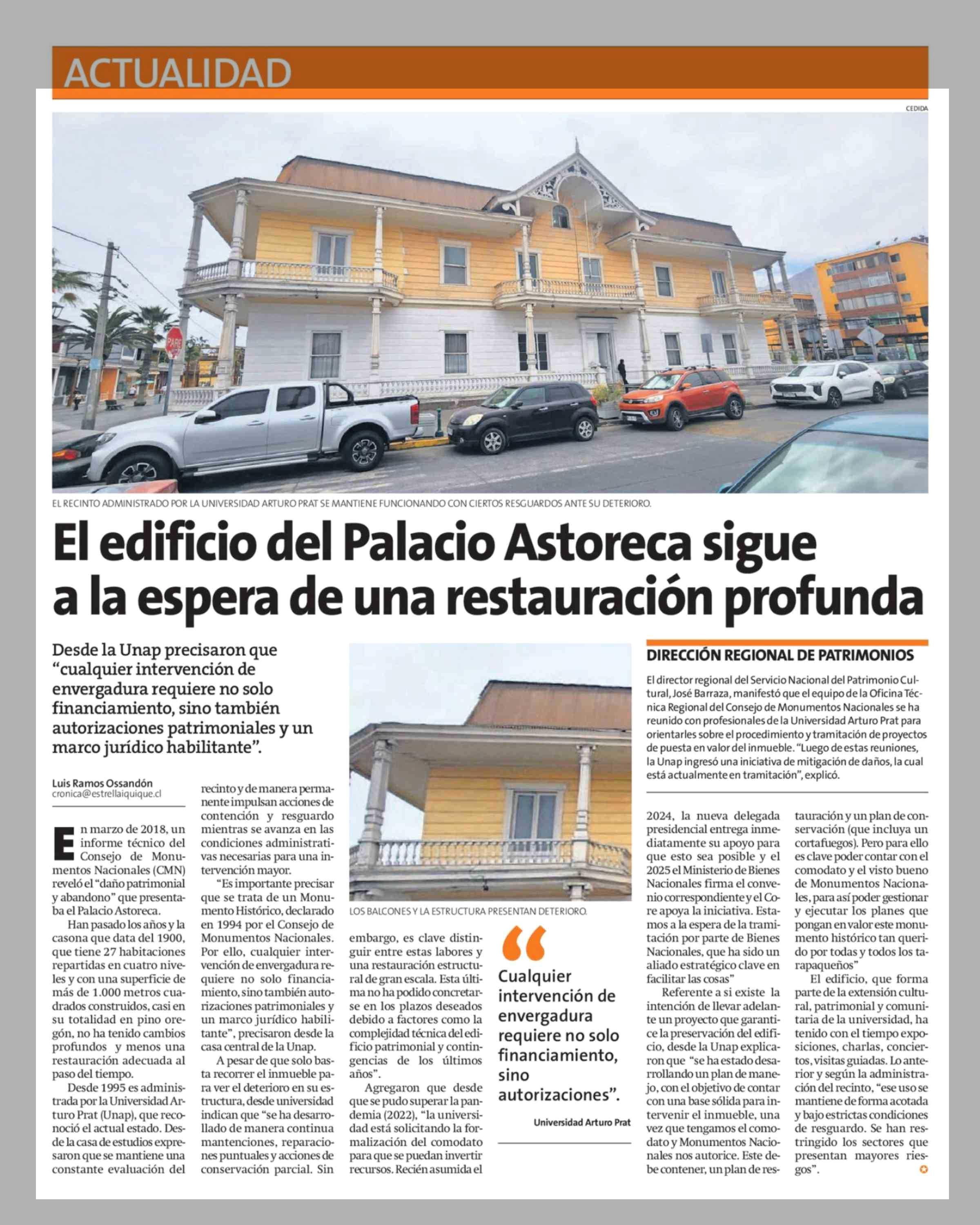 El edificio del Palacio Astoreca sigue a la espera de una restauración profunda 14-04-2026 La Estrella de Iquique |