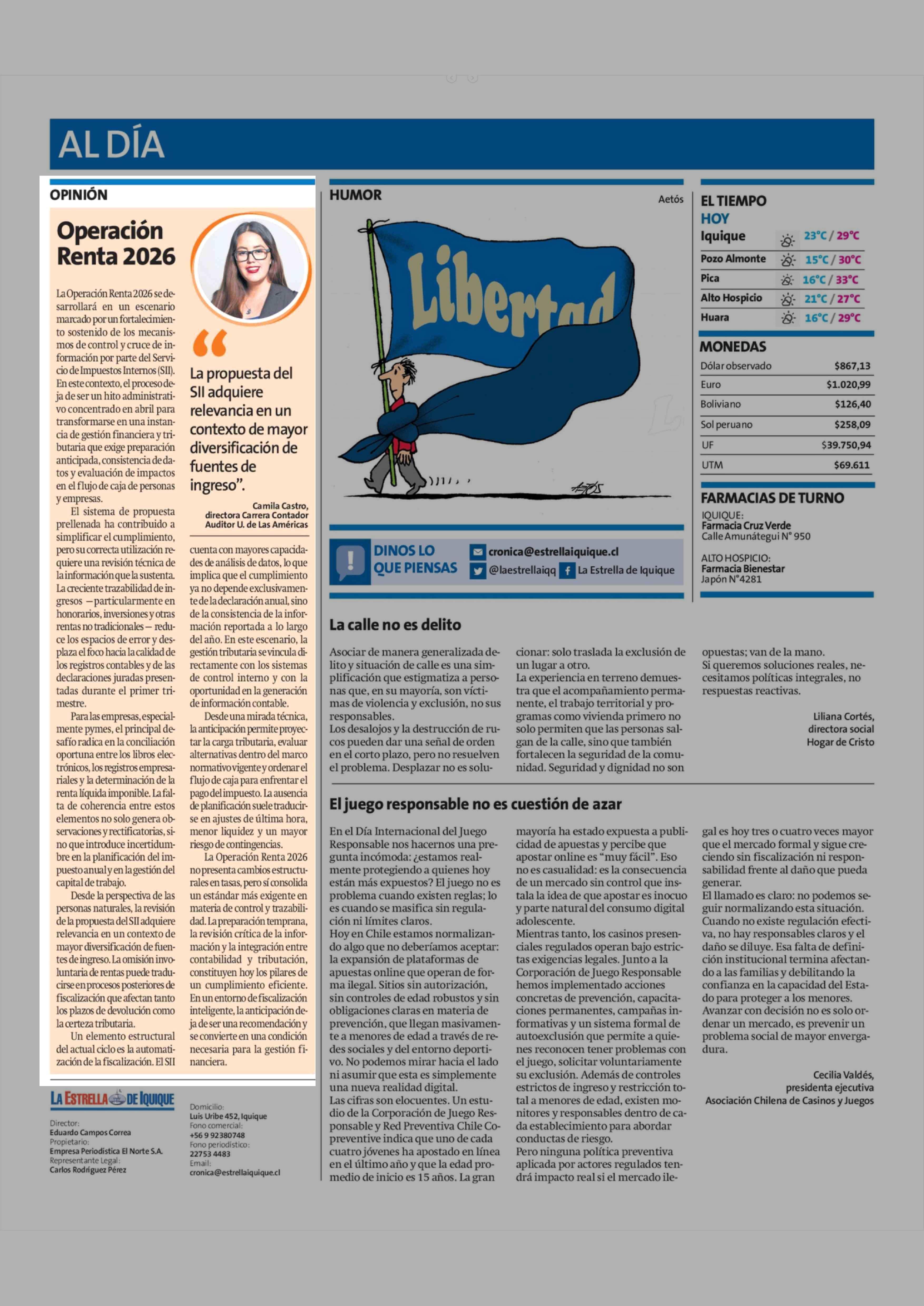 Columnas de Opinión: Operación Renta 2026 21-02-2026 La Estrella de Iquique |