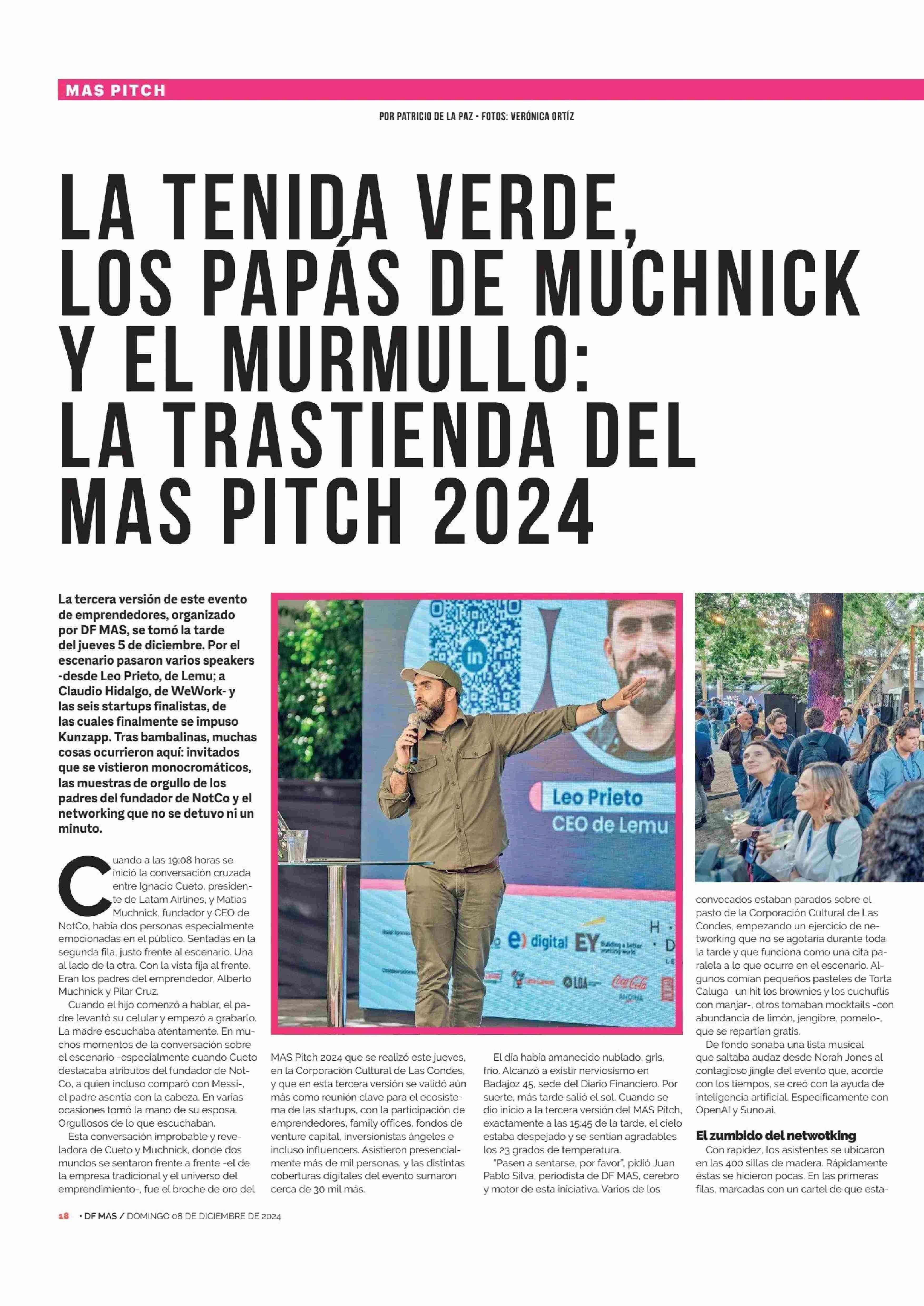 LA TENIDA VERDE, LOS PAPAS DE MUCHNICK Y EL MURMULLO: LA TRASTIENDA DEL MAS PITCH 2024 08-12-2024 Diario Financiero |