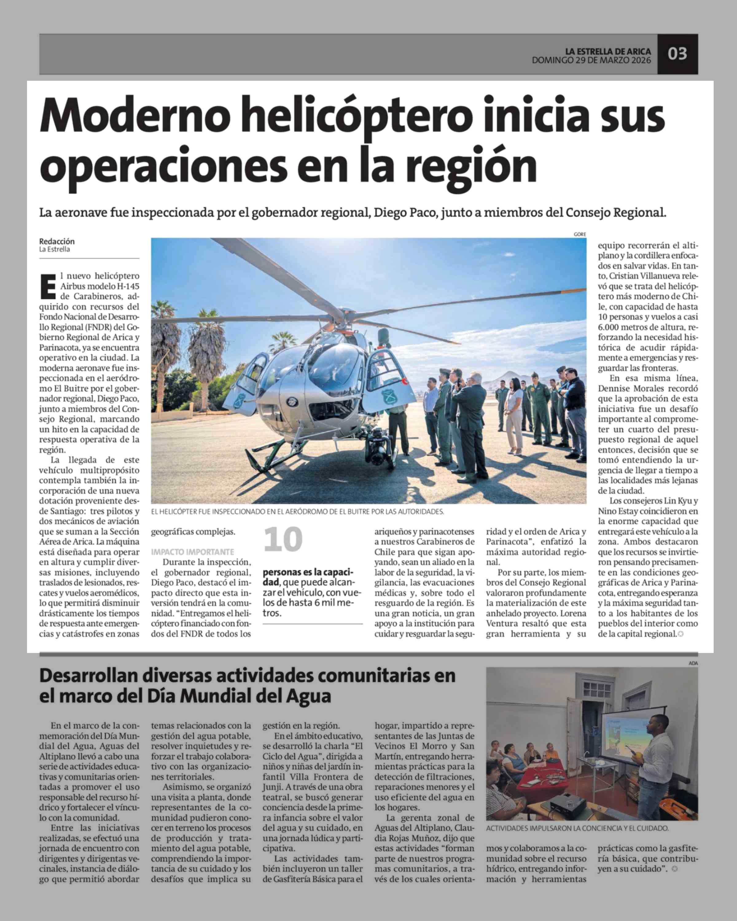 Moderno helicóptero inicia sus operaciones en la región 29-03-2026 La Estrella de Arica |