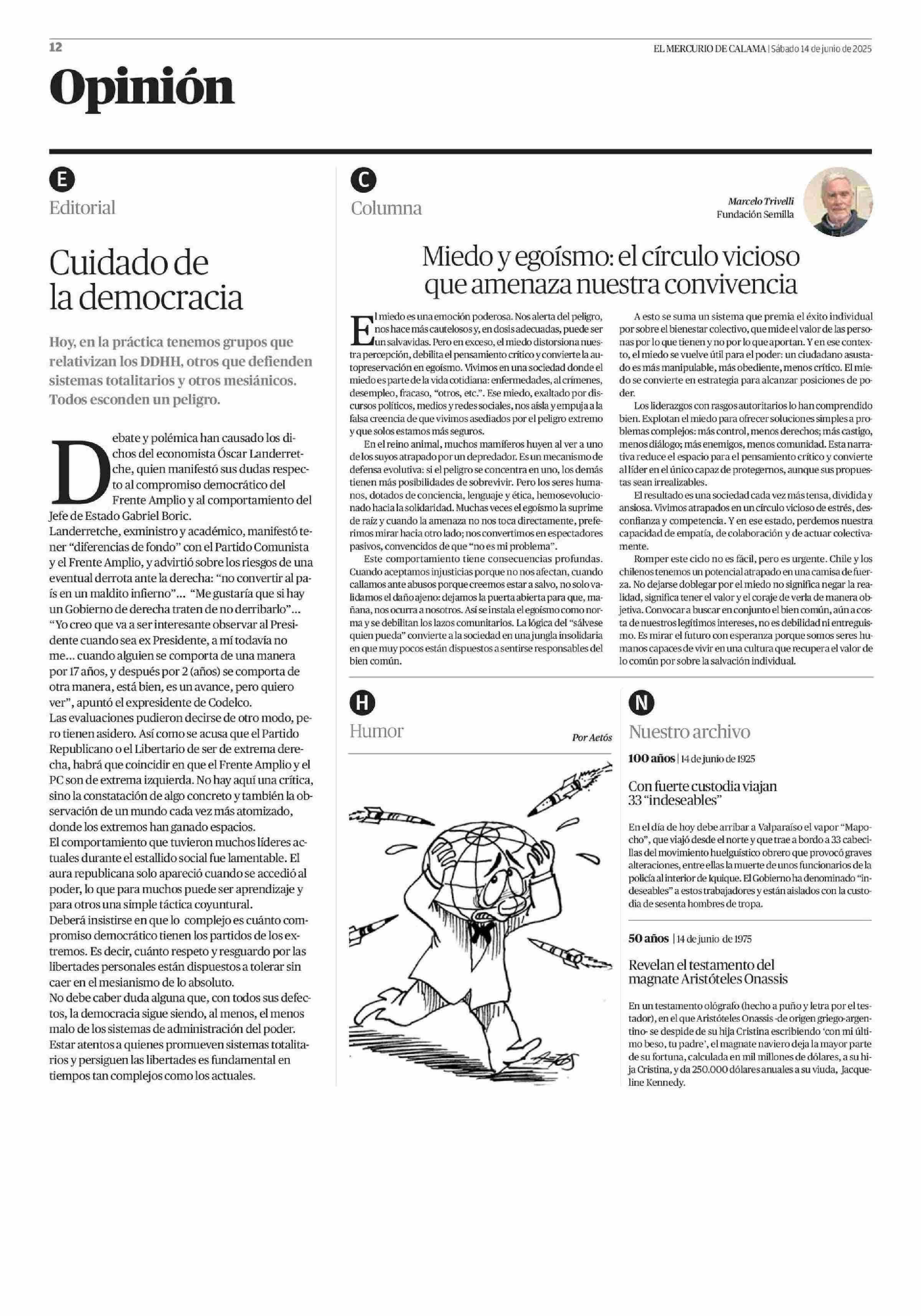 Editorial: Cuidado de la democracia 14-06-2025 El Mercurio de Calama |