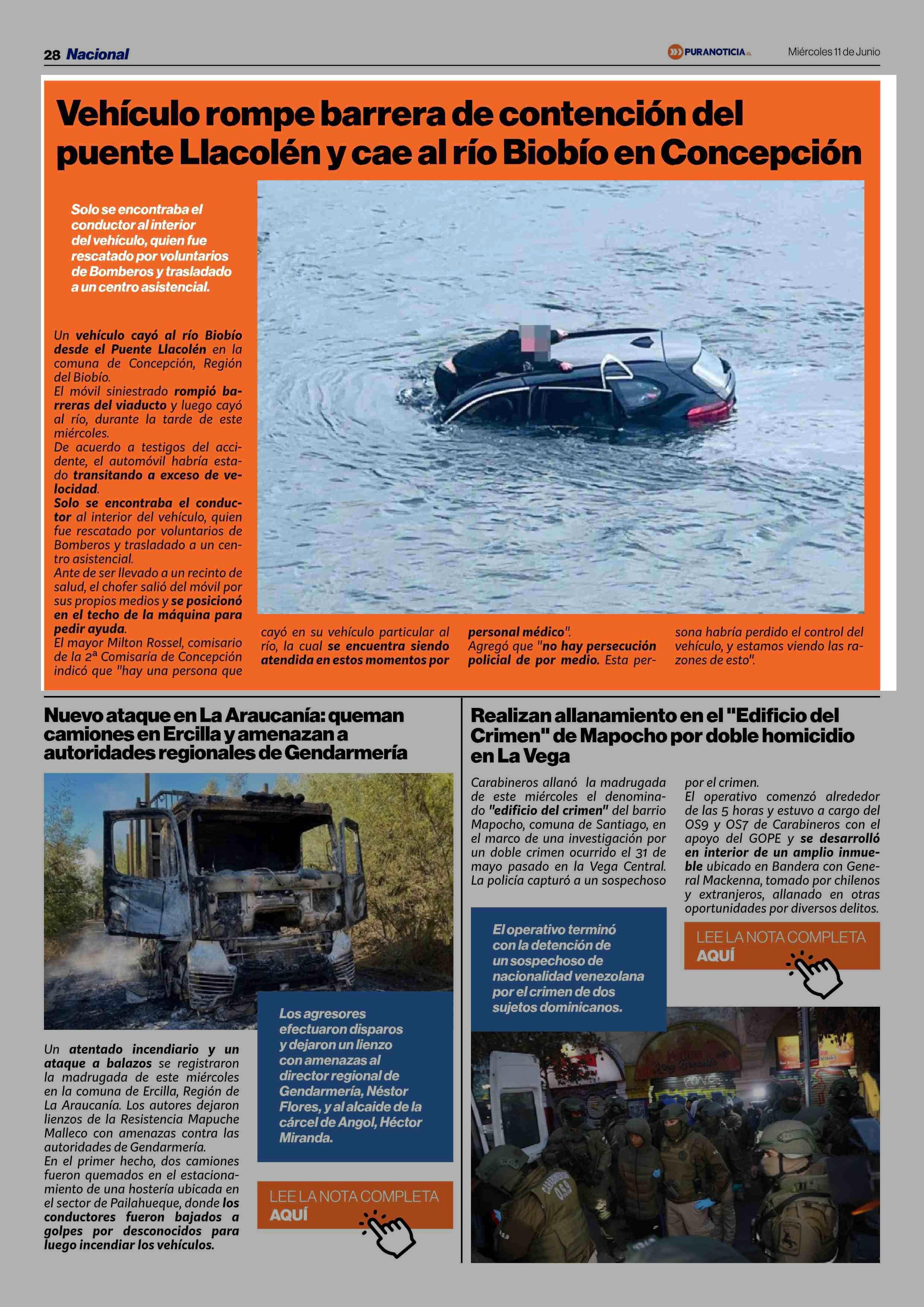 Vehículo rompe barrera de contención del puente Llacolén y cae al río Biobío en Concepción 11-06-2025 Puranoticia.cl |