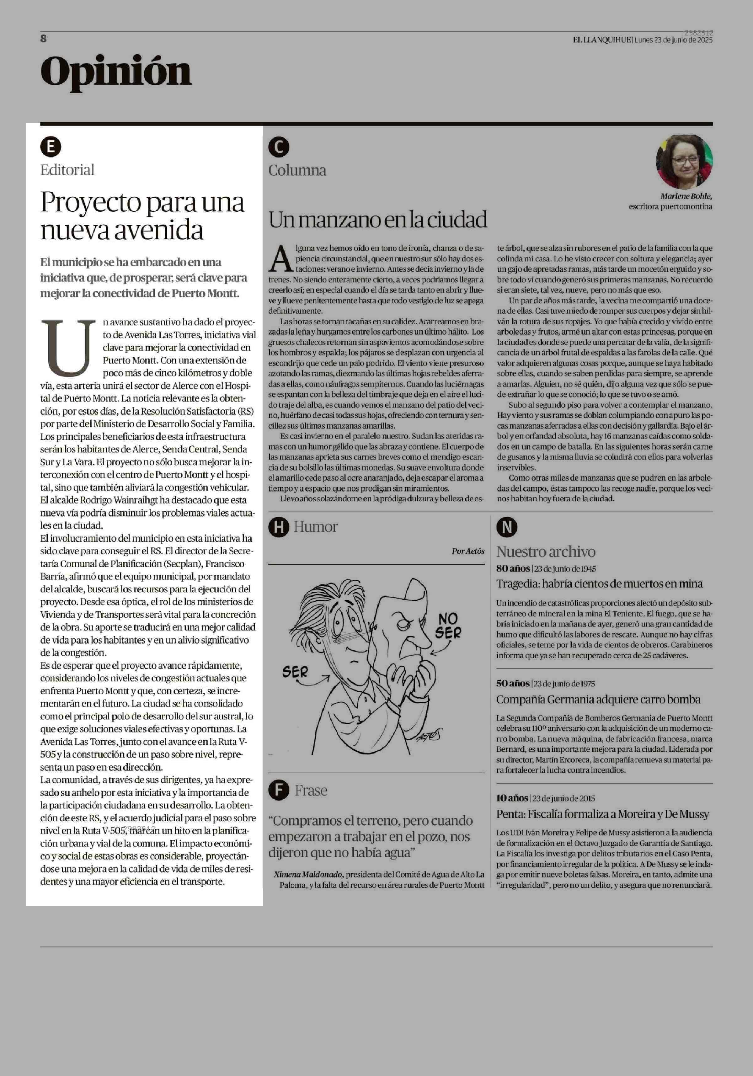 Editorial: Proyecto para una nueva avenida 23-06-2025 El Llanquihue |