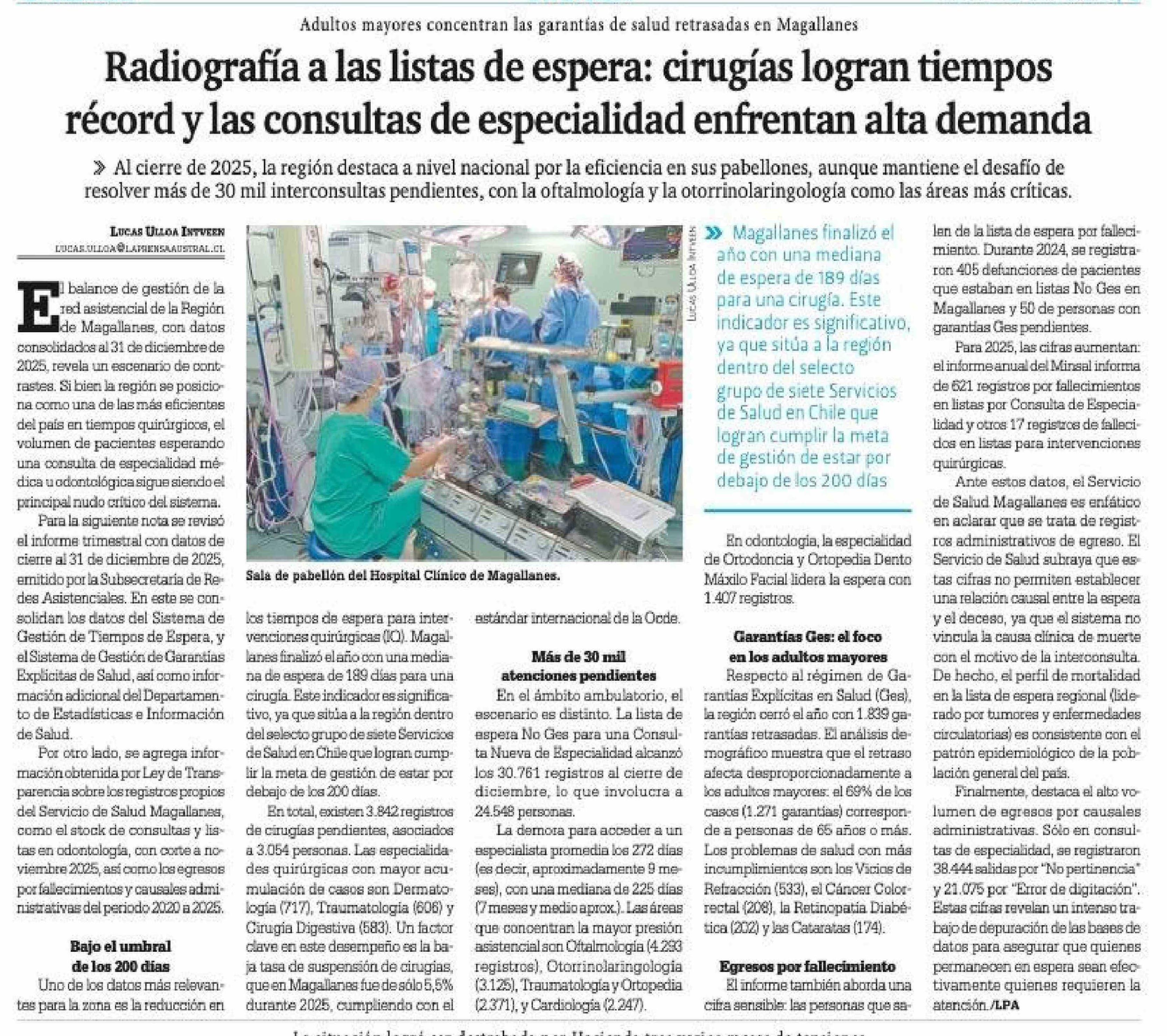 Radiografía a las listas de espera: cirugías logran tiempos récord y las consultas de especialidad enfrentan alta demanda 07-03-2026 La Prensa Austral |
