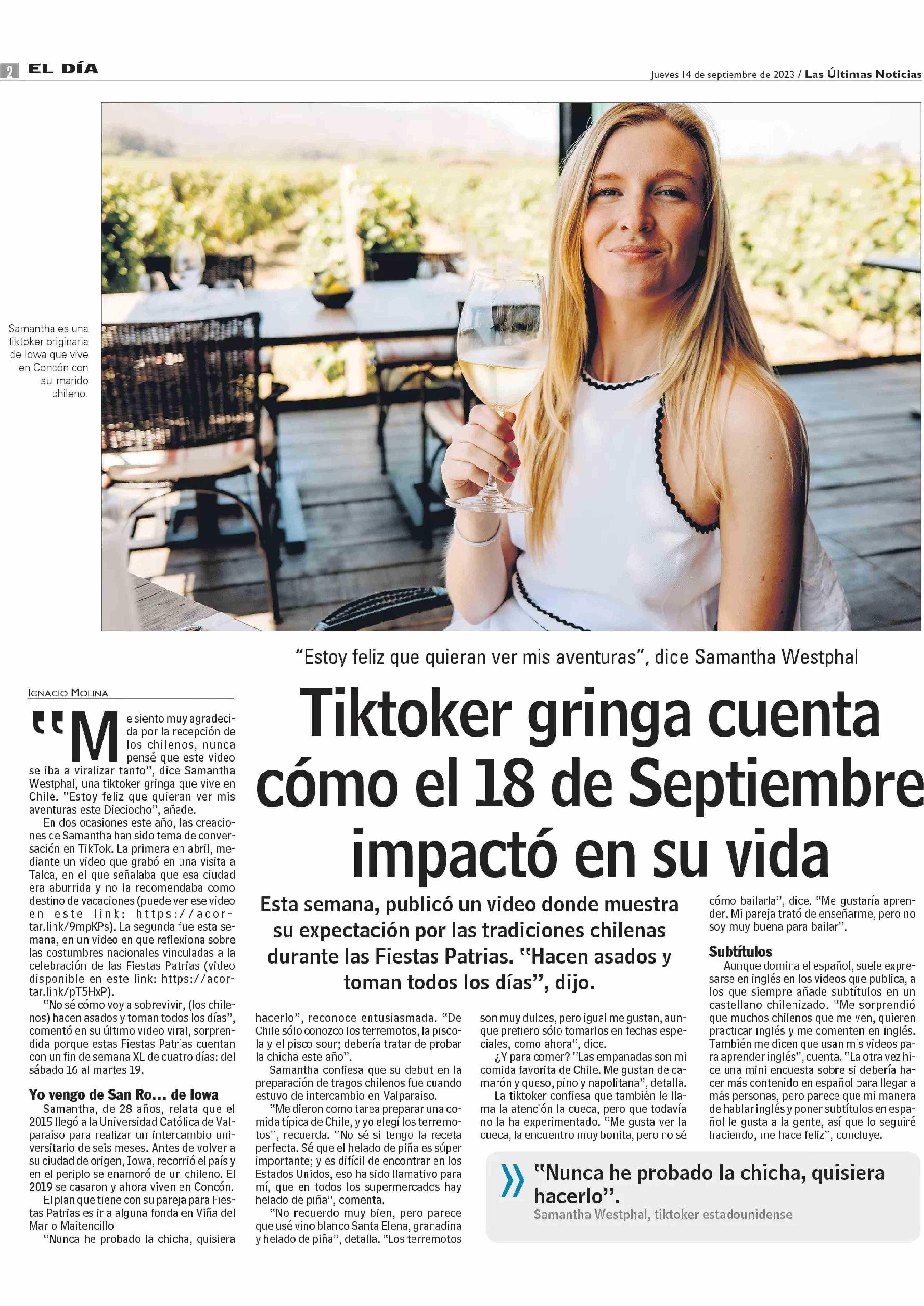 Tiktoker gringa cuenta cómo el 18 de Septiembre impactó en su vida 14-09-2023 Las Últimas Noticias |