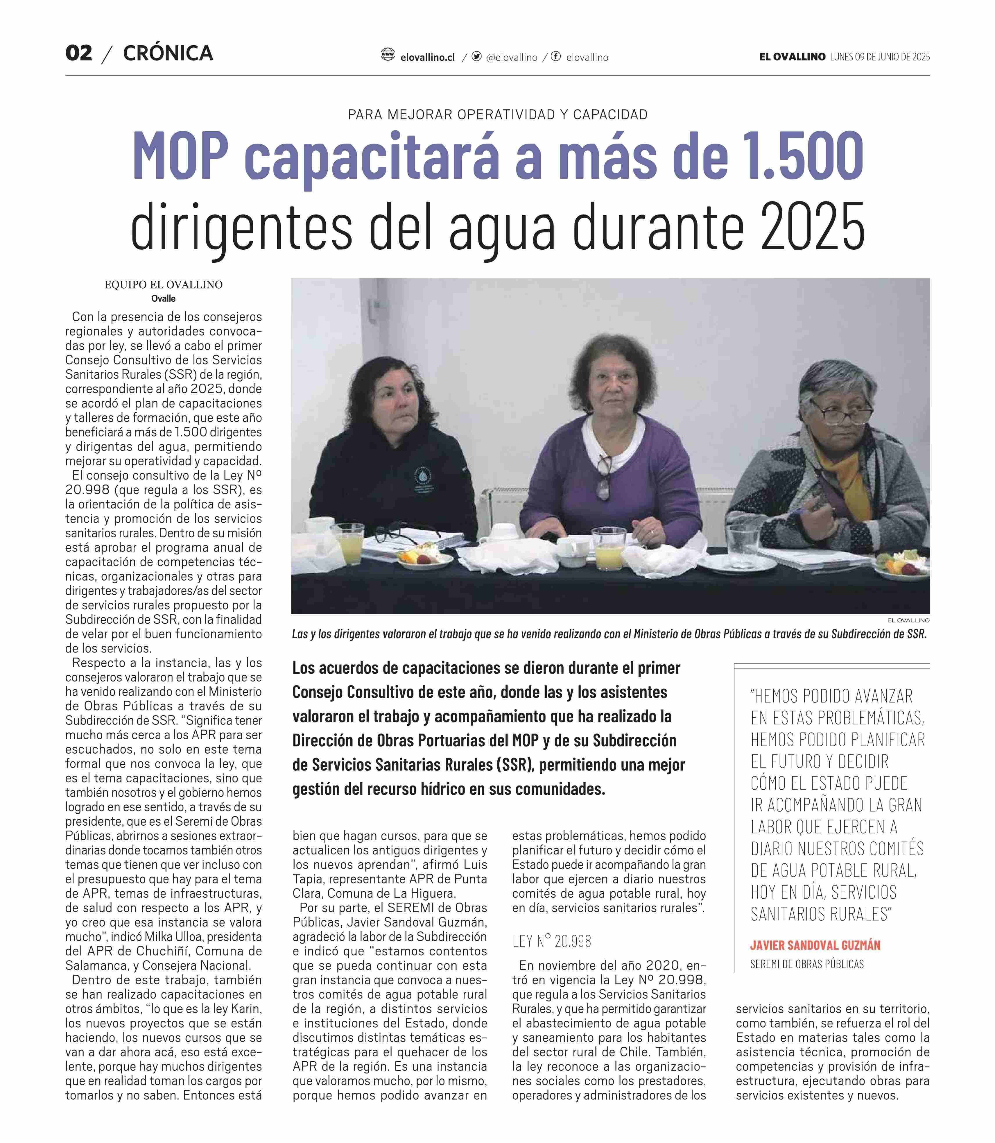 Título: MOP capacitará a más de 1.500 dirigentes del agua durante 2025