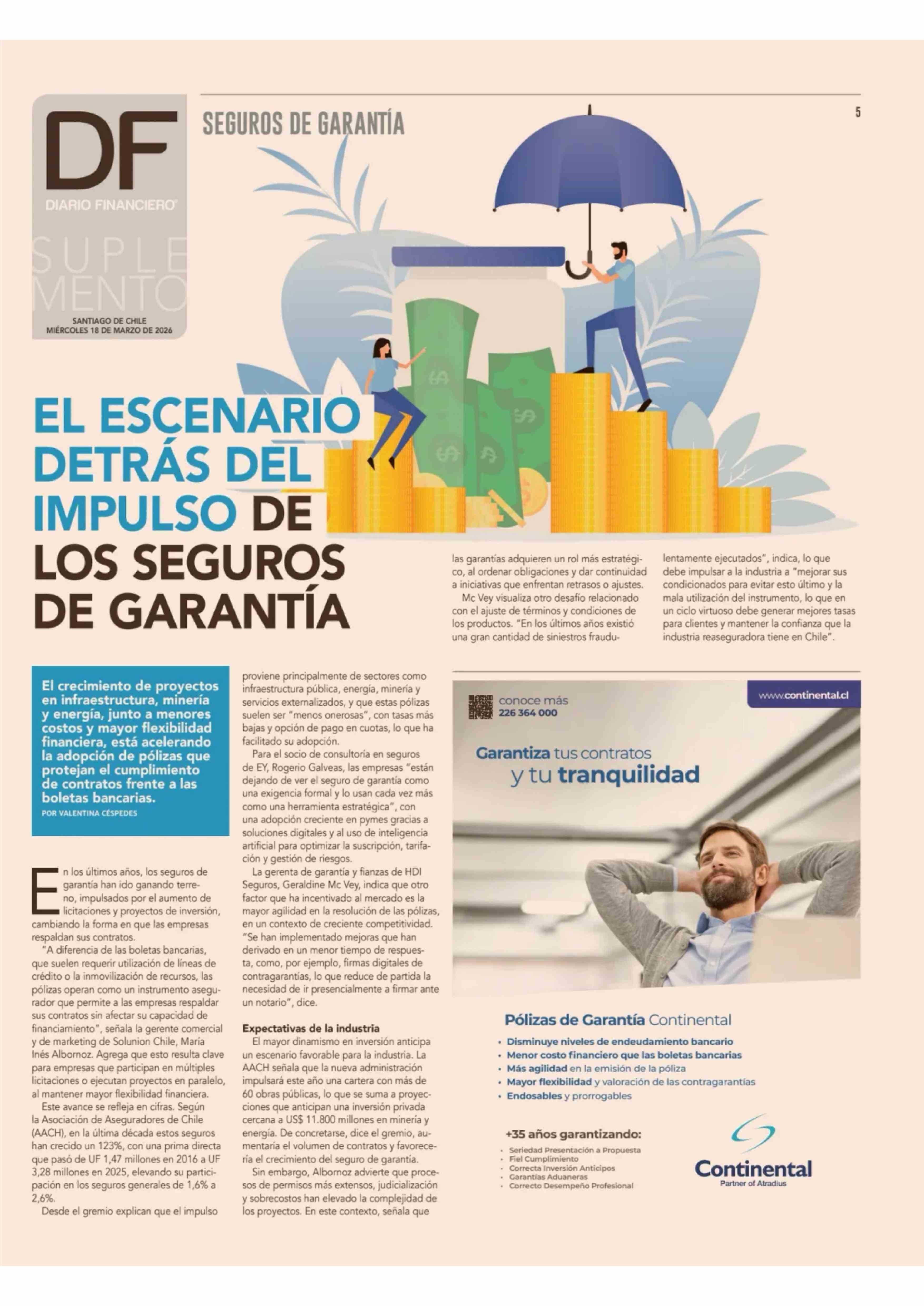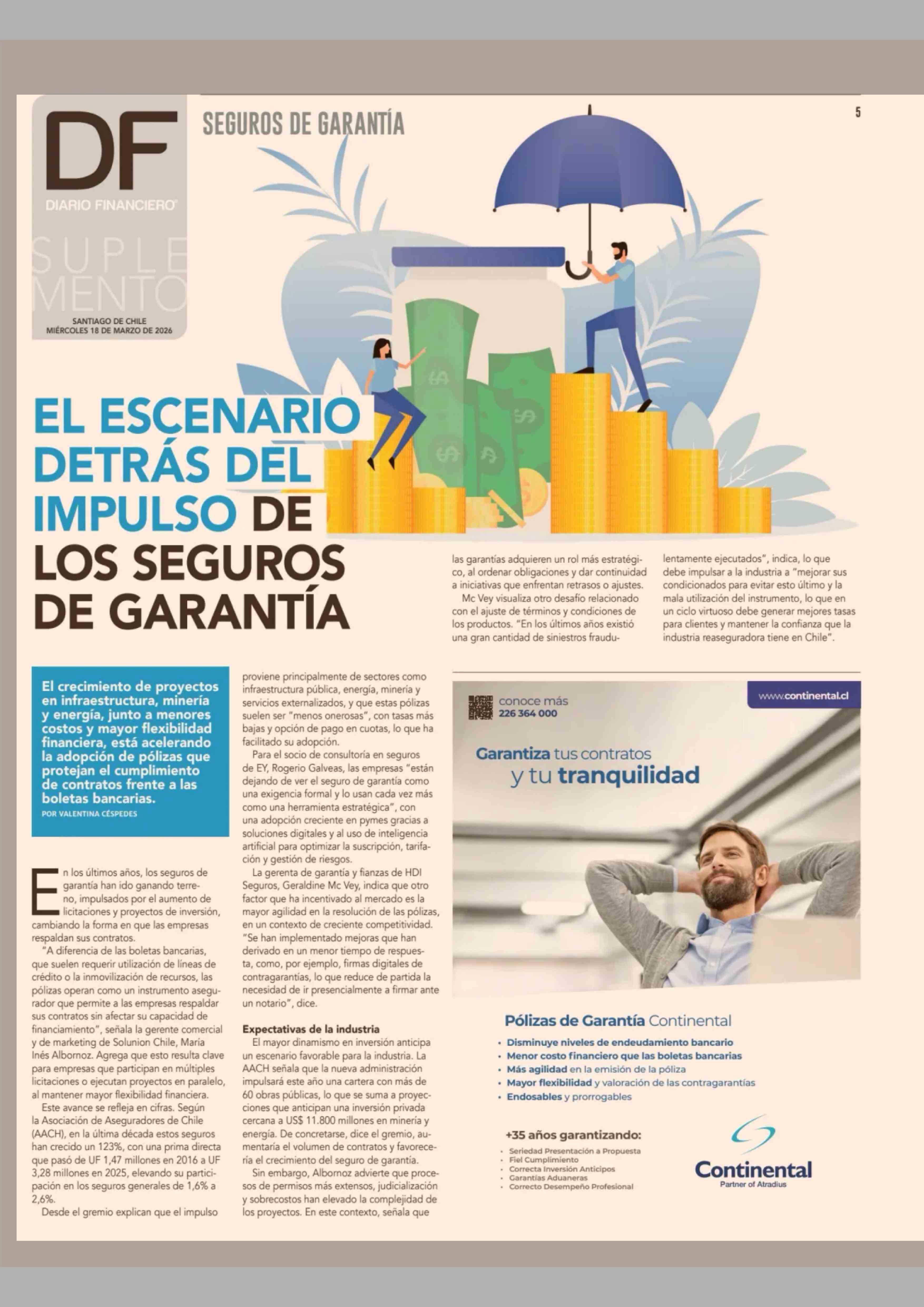 EL ESCENARIO DETRÁS DEL IMPULSO DE LOS SEGUROS DE GARANTÍA 18-03-2026 Diario Financiero |