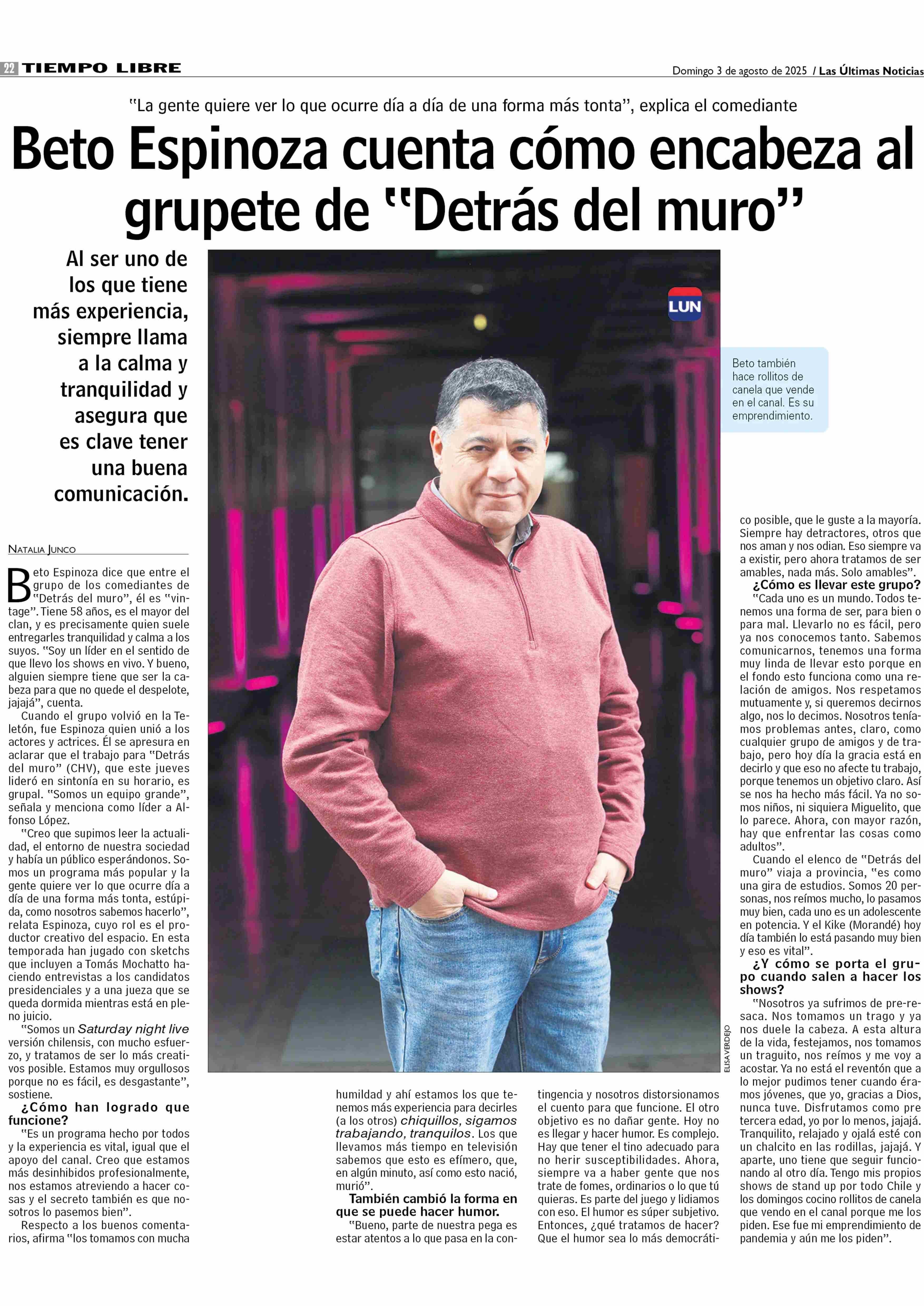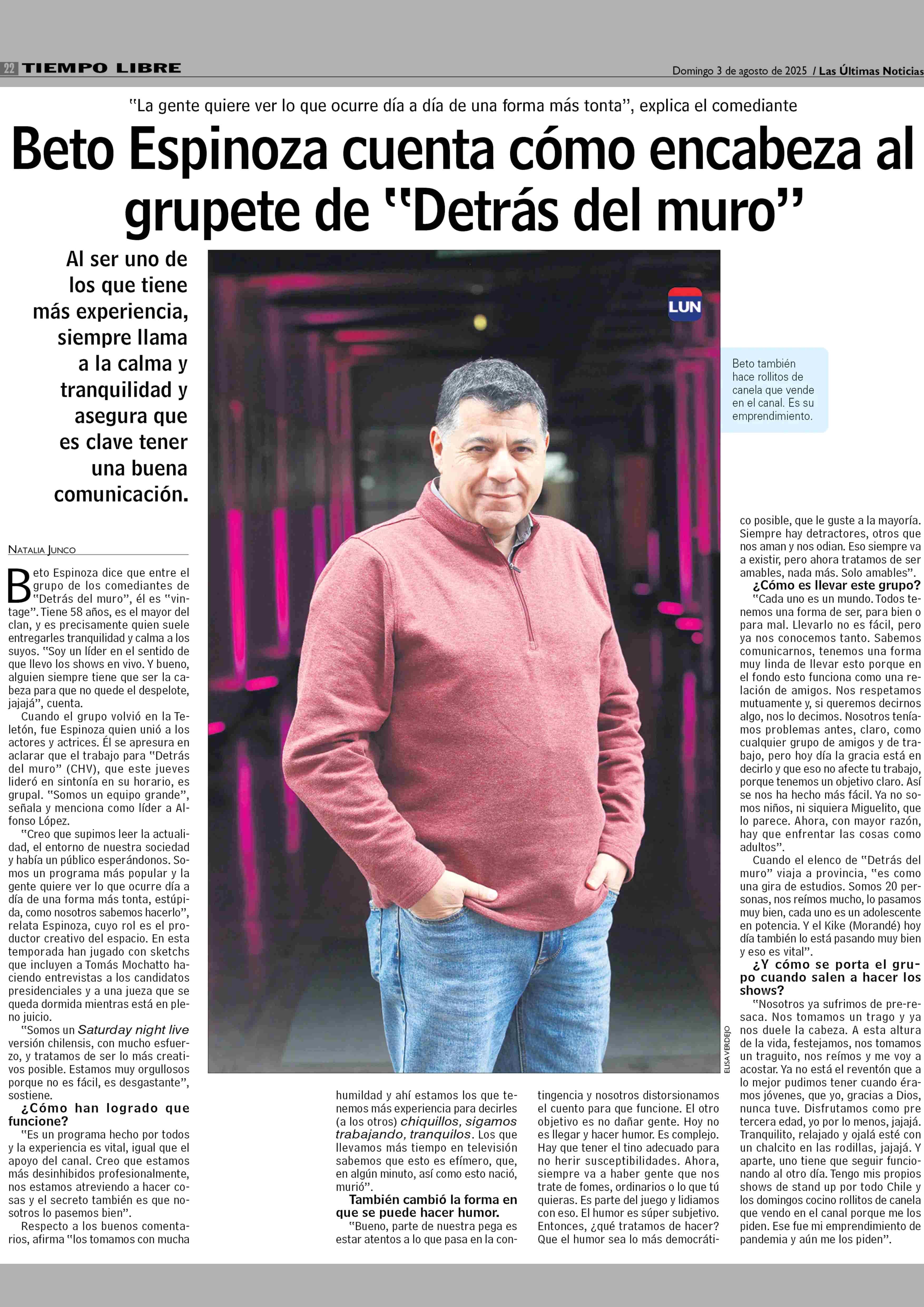 Beto Espinoza cuenta cómo encabeza al grupete de “Detrás del muro” 03-08-2025 Las Últimas Noticias |
