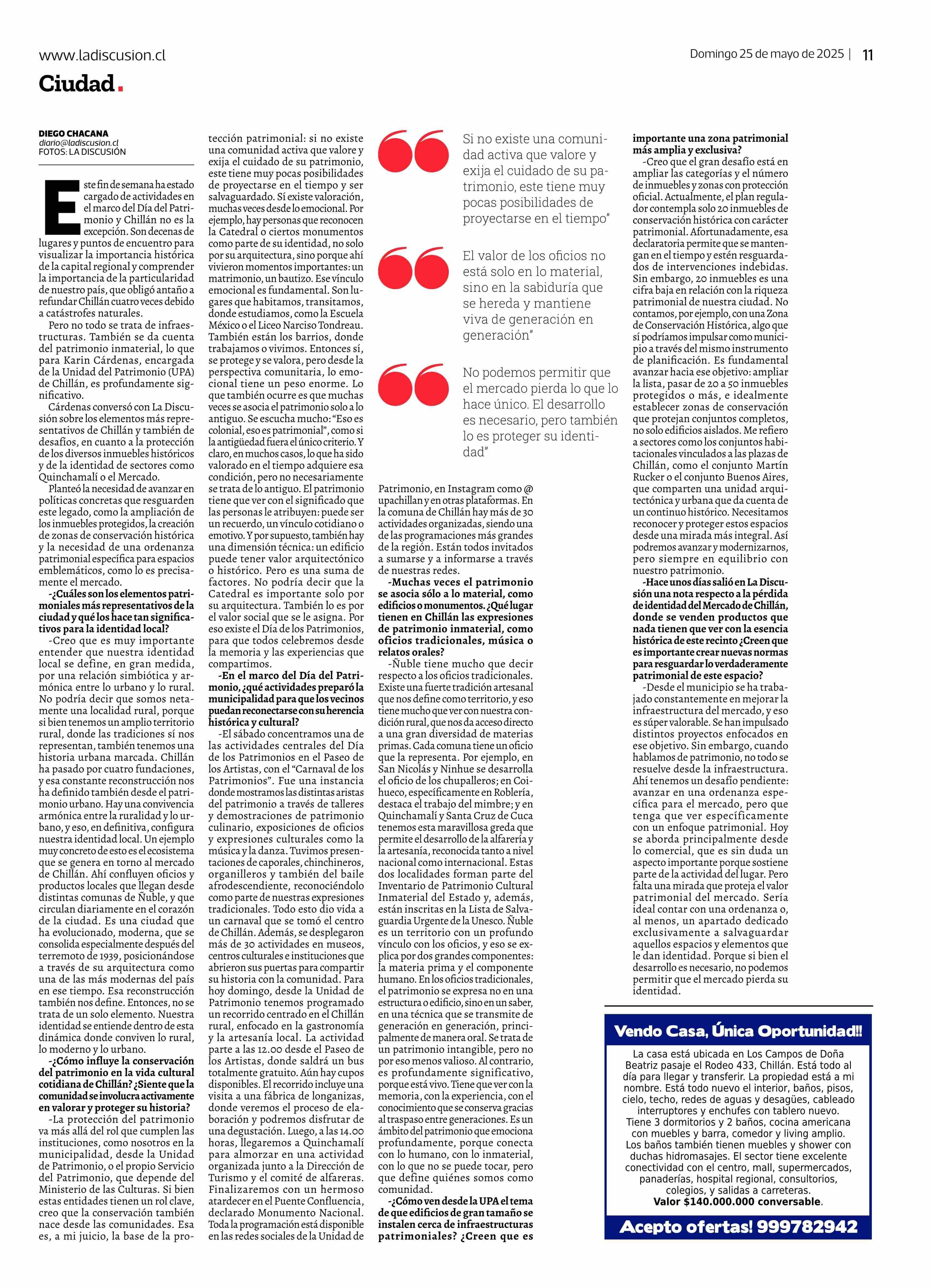 "Creo que el gran desafío está en ampliar las categorías y el número de inmuebles y zonas con protección oficial" 25-05-2025 La Discusión |