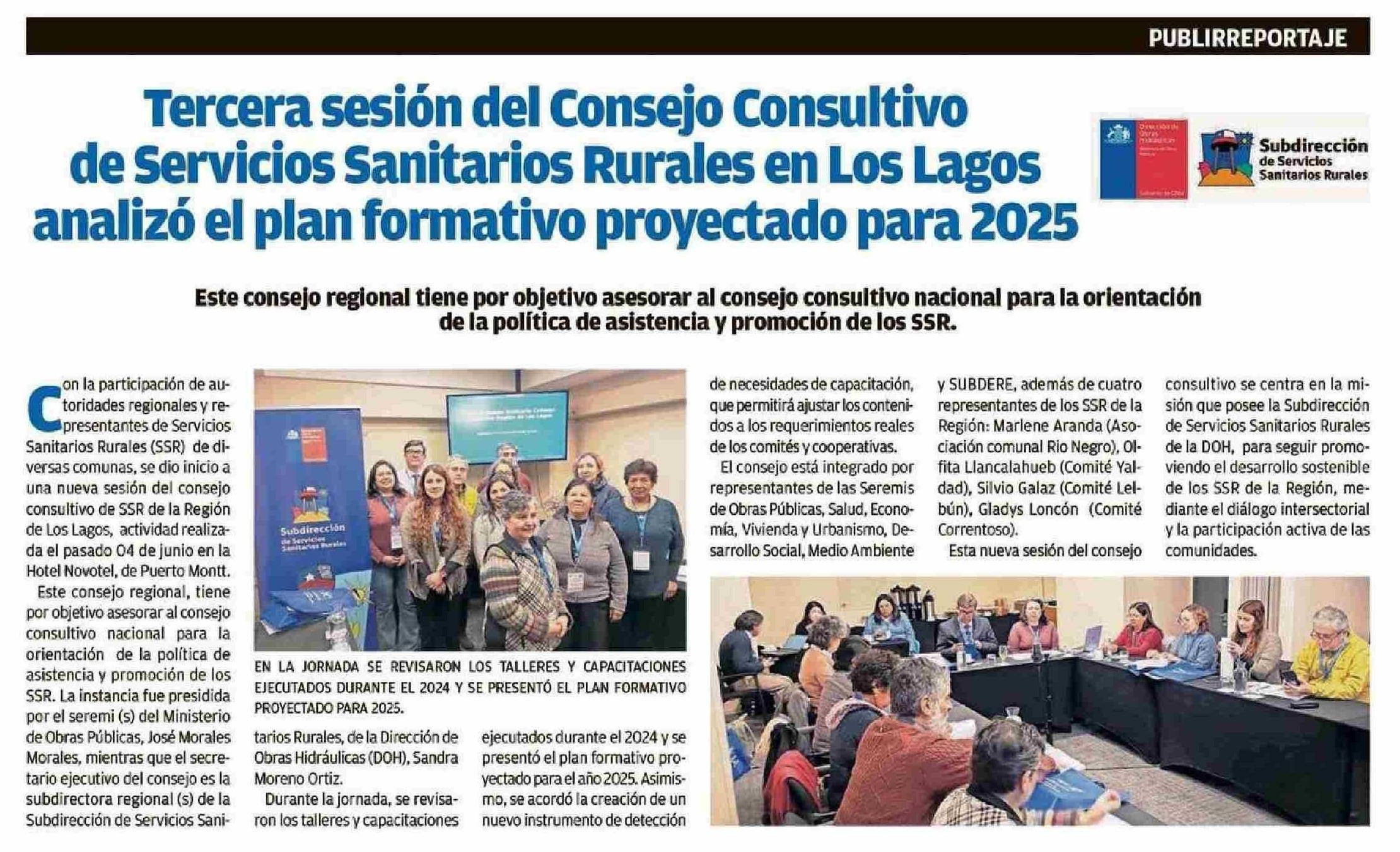 Tercera sesión del Consejo Consultivo de Servicios Sanitarios Rurales en Los Lagos analizó el plan formativo proyectado para 2025 13-06-2025 El Llanquihue |