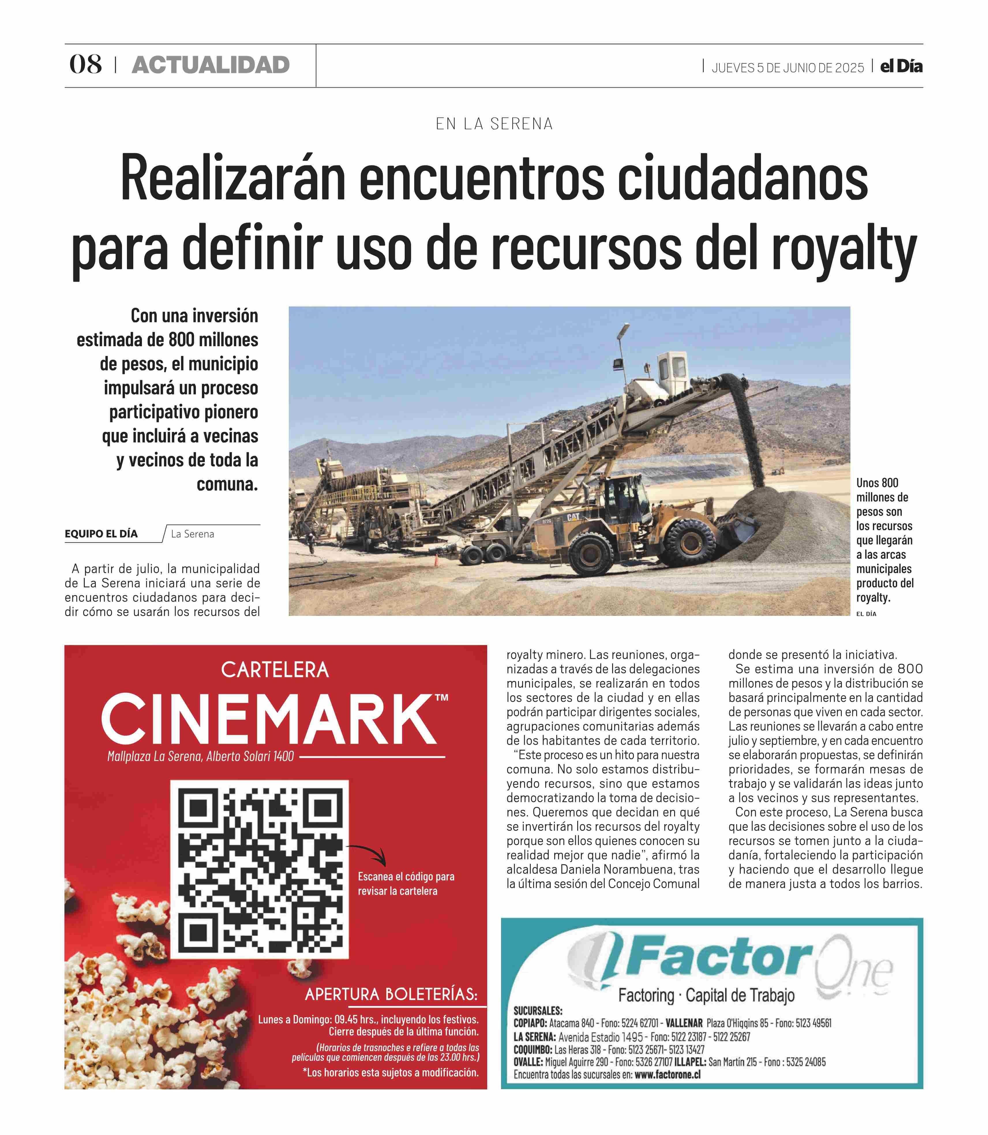 Realizarán encuentros ciudadanos para definir uso de recursos del royalty 05-06-2025 El Día |