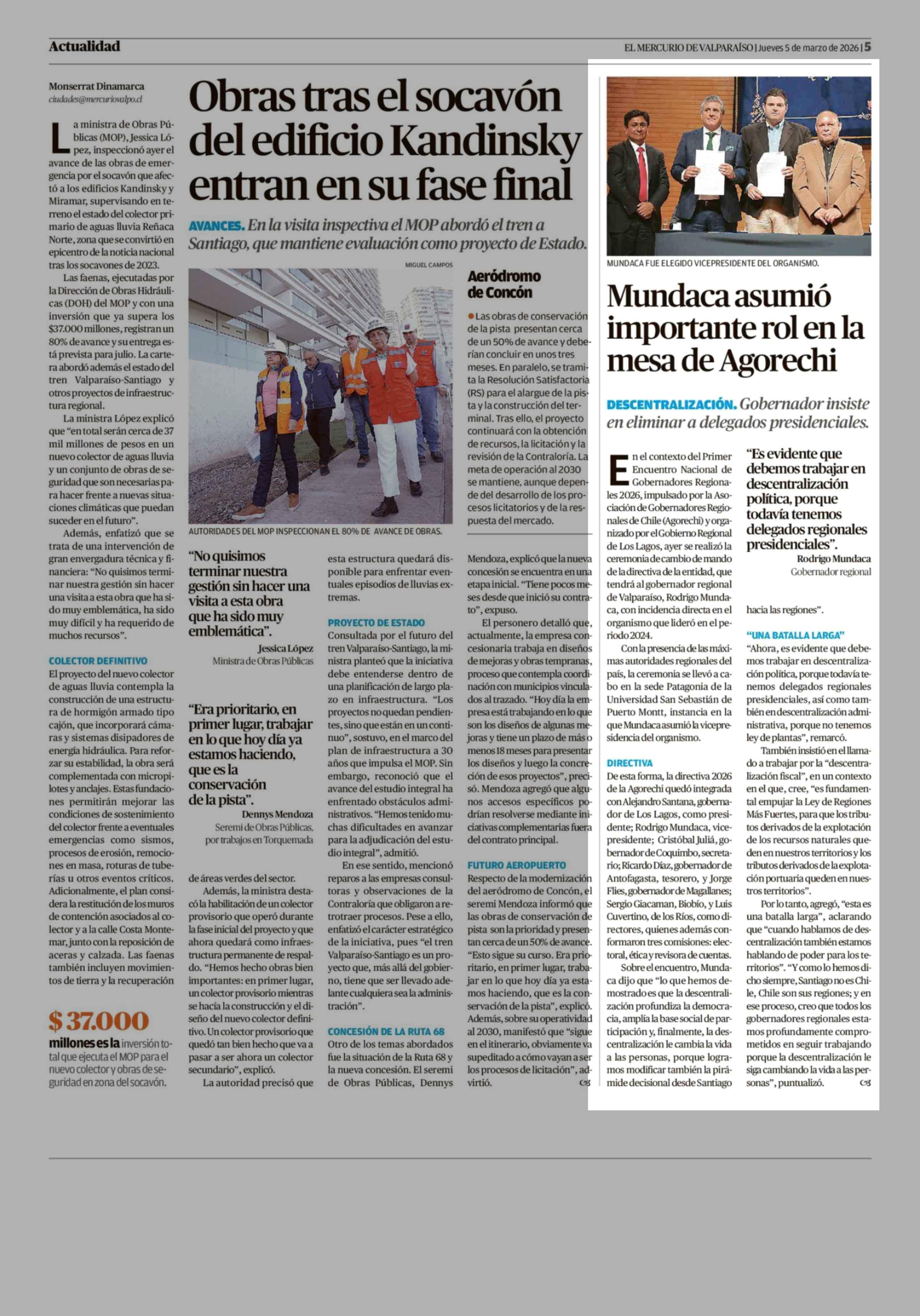Mundaca asumió importante rol en la mesa de Agorechi 05-03-2026 El Mercurio de Valparaíso |