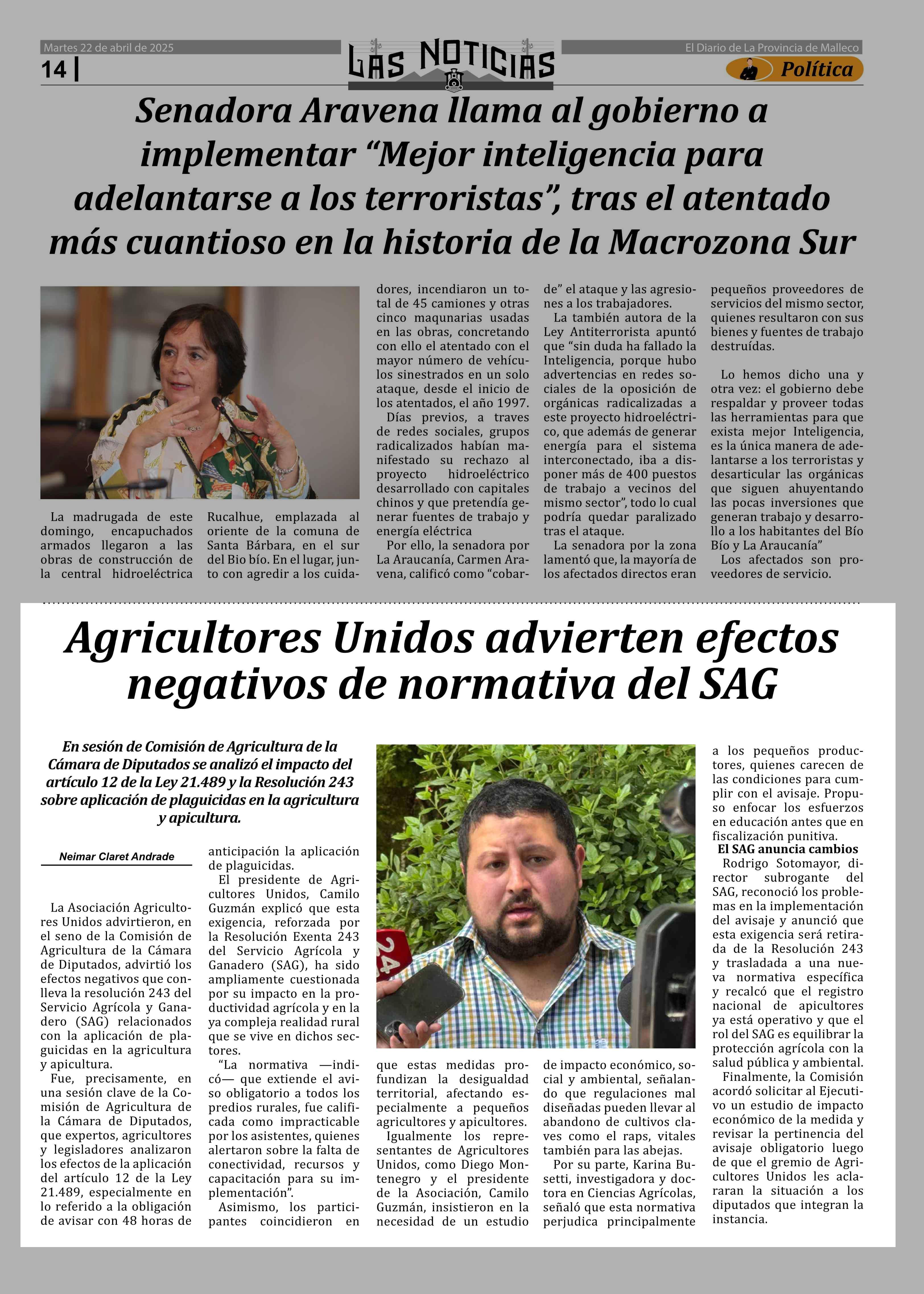 | Fecha: | 22-04-2025 | Sector: | Noticia general | Región: | Región de la Araucanía |