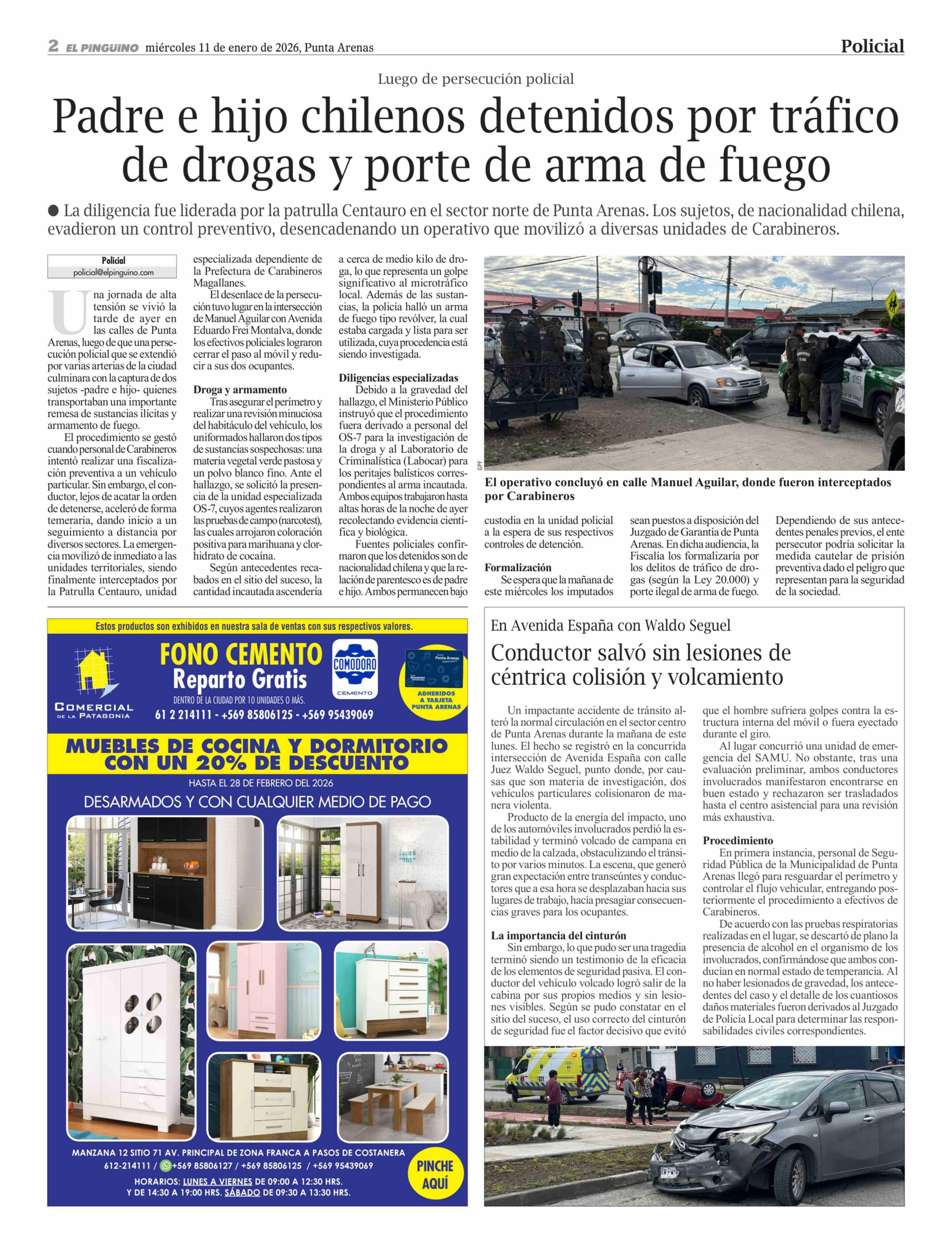 Padre e hijo chilenos detenidos por tráfico de drogas y porte de arma de fuego 11-03-2026 El Pingüino |