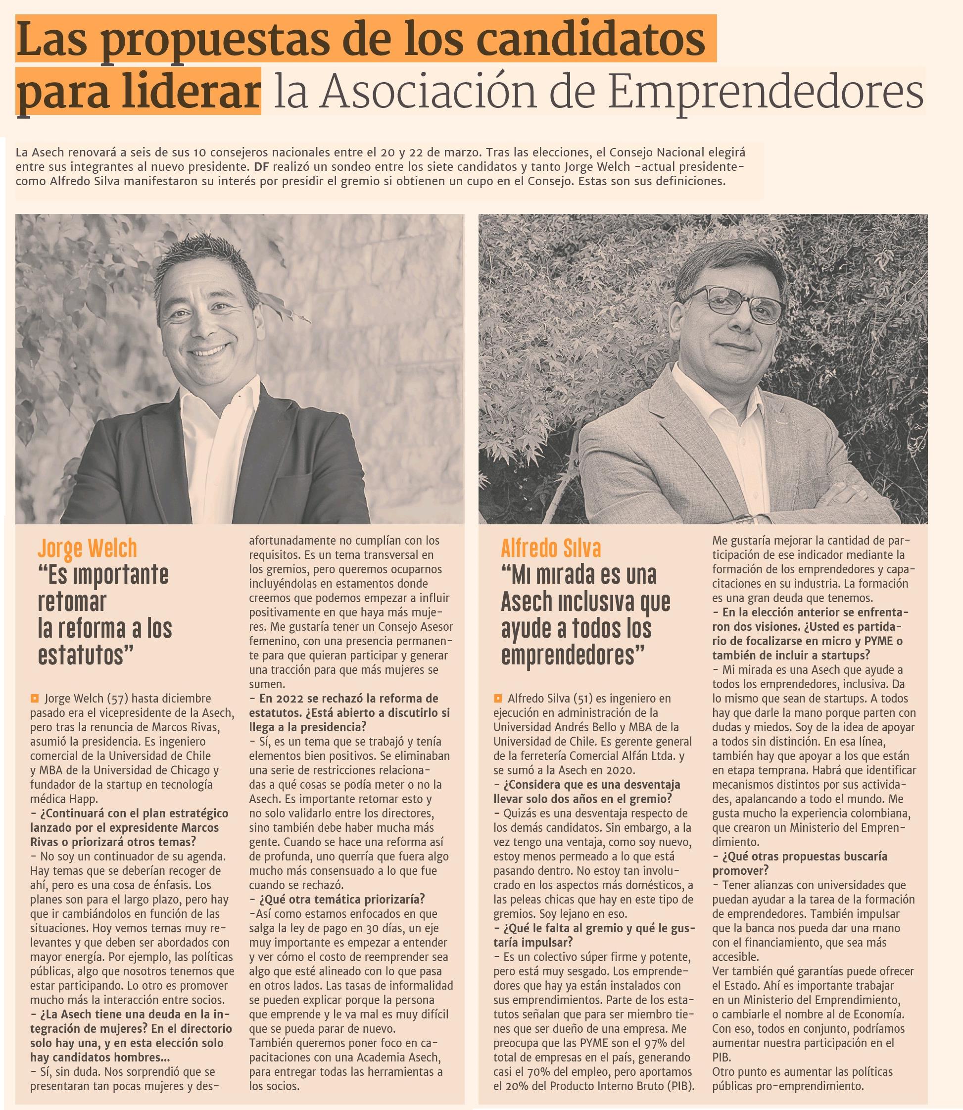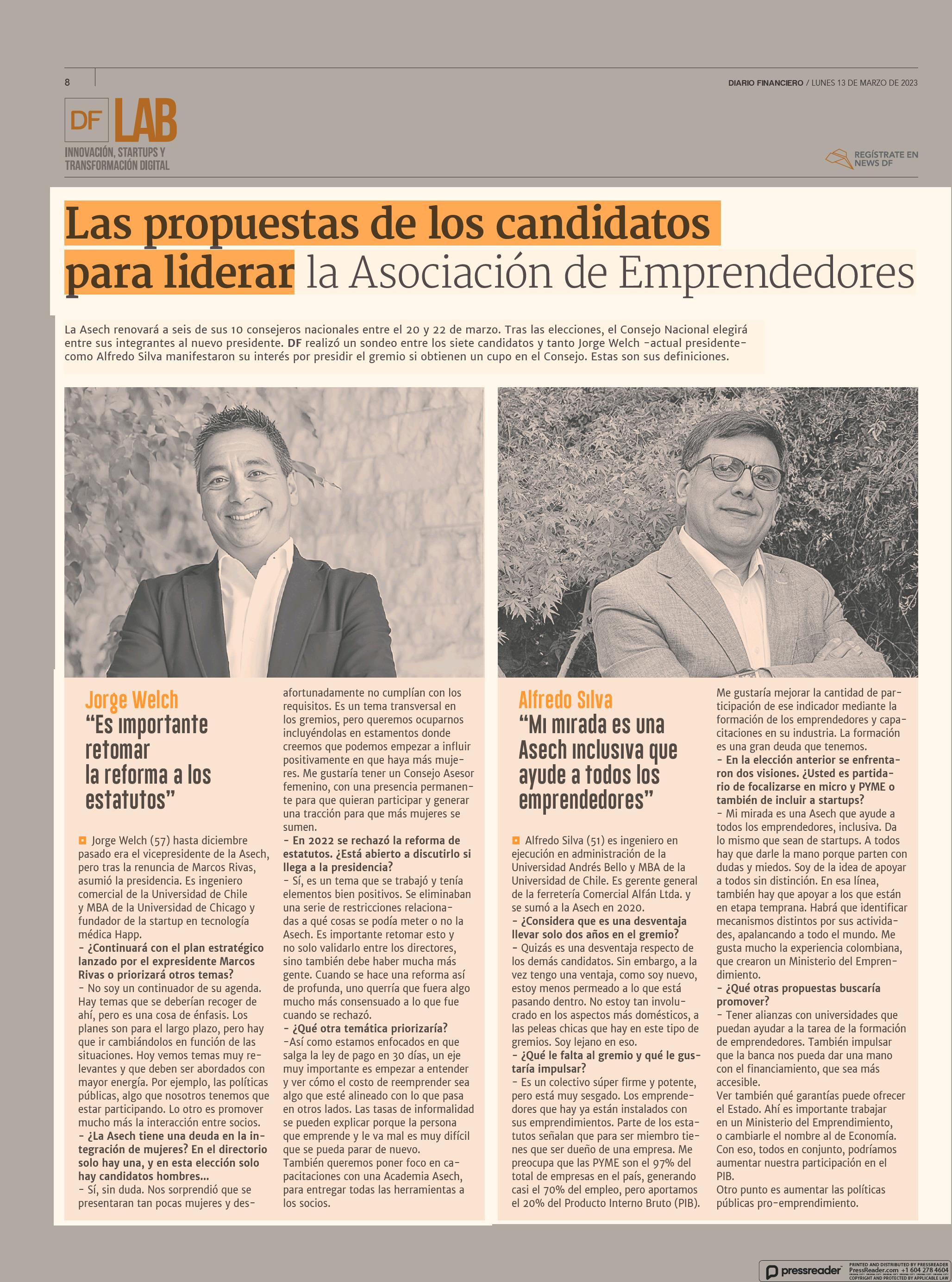 Las propuestas de los candidatos para liderar la Asociación de Emprendedores 13-03-2023 Diario Financiero |