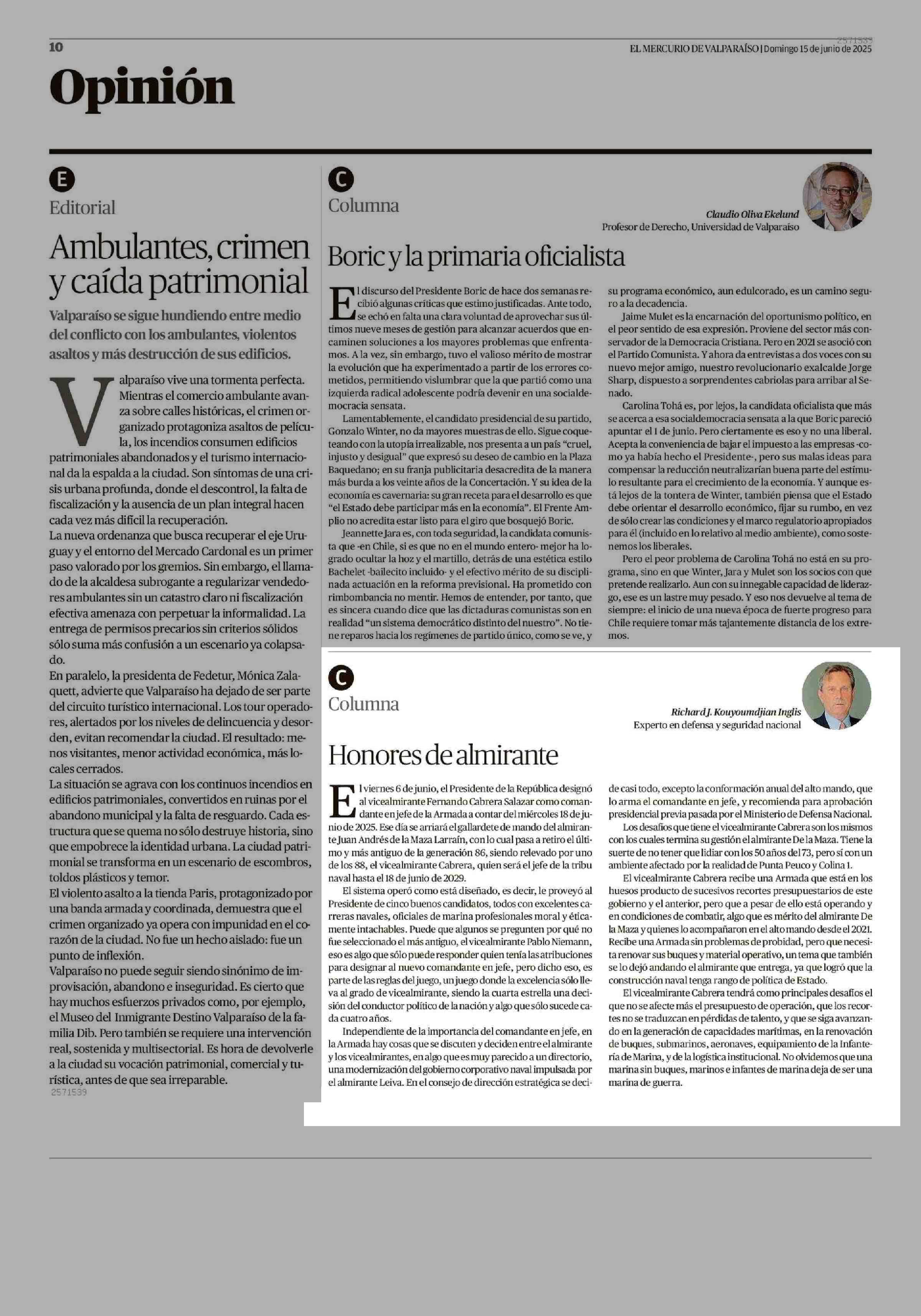 COLUMNAS DE OPINIÓN: Honores de almirante 15-06-2025 El Mercurio de Valparaíso |