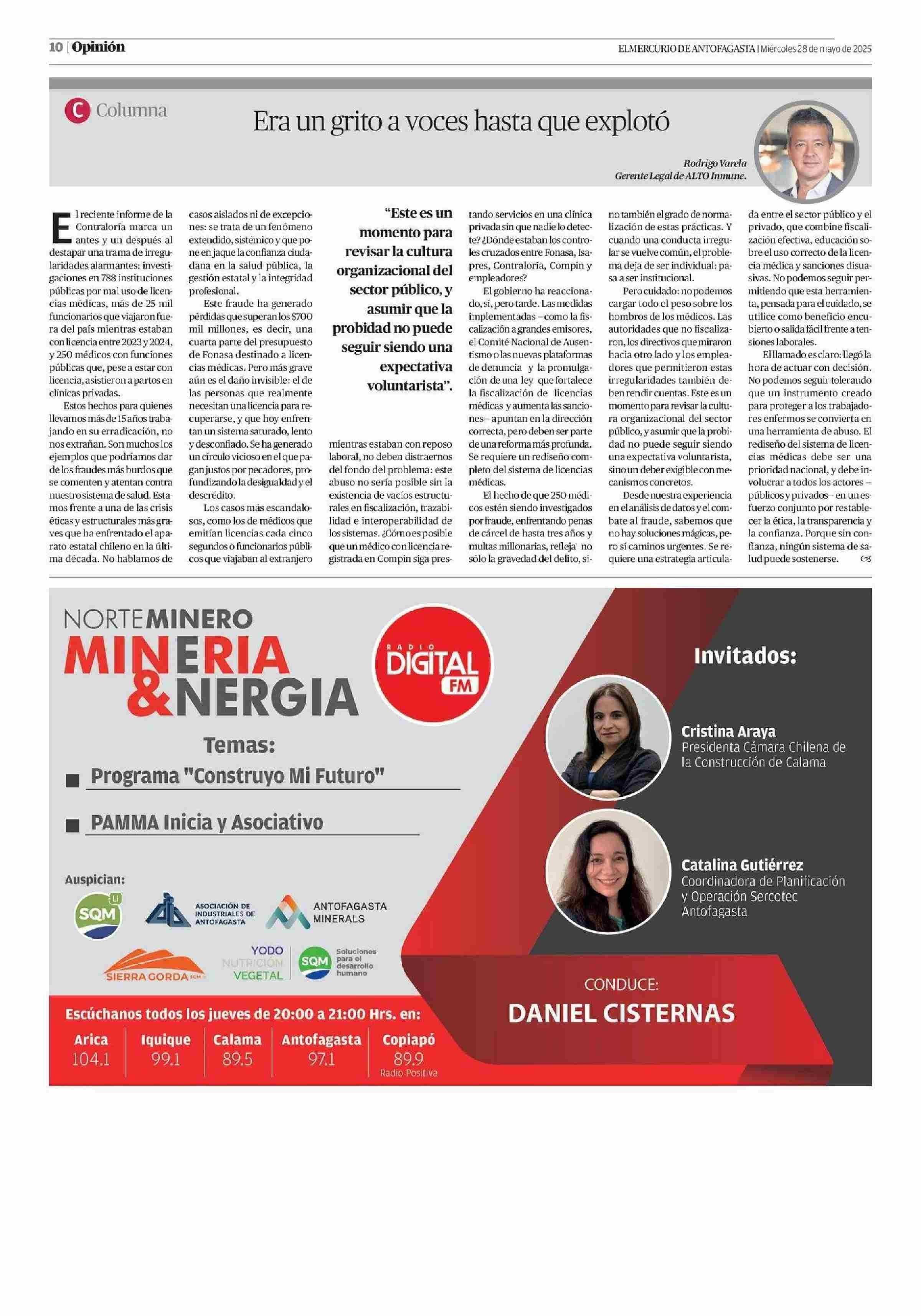 Era un grito a voces hasta que explotó 28-05-2025 El Mercurio de Antofagasta |