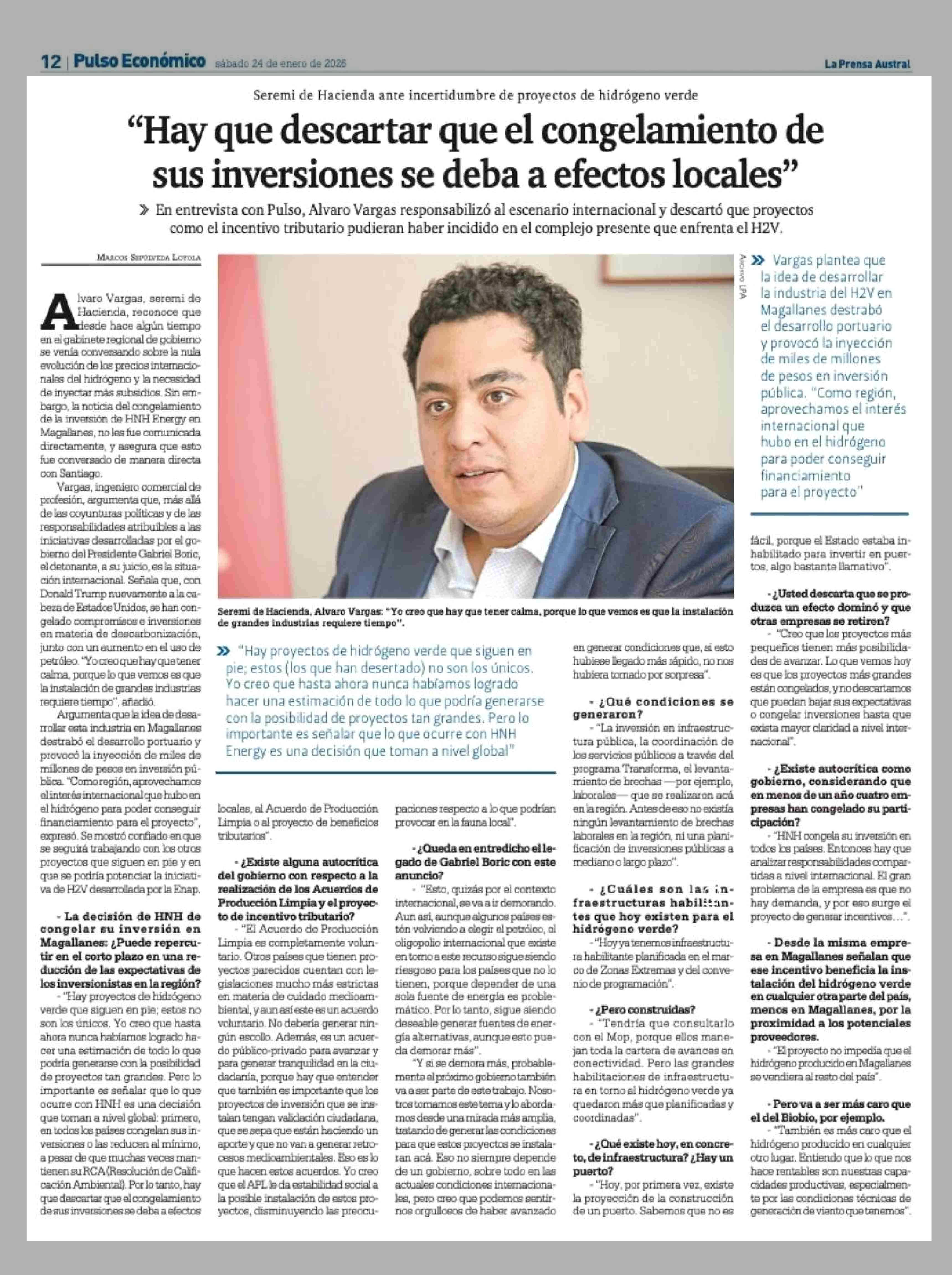 "Hay que descartar que el congelamiento de sus inversiones se deba a efectos locales" 24-01-2026 La Prensa Austral |